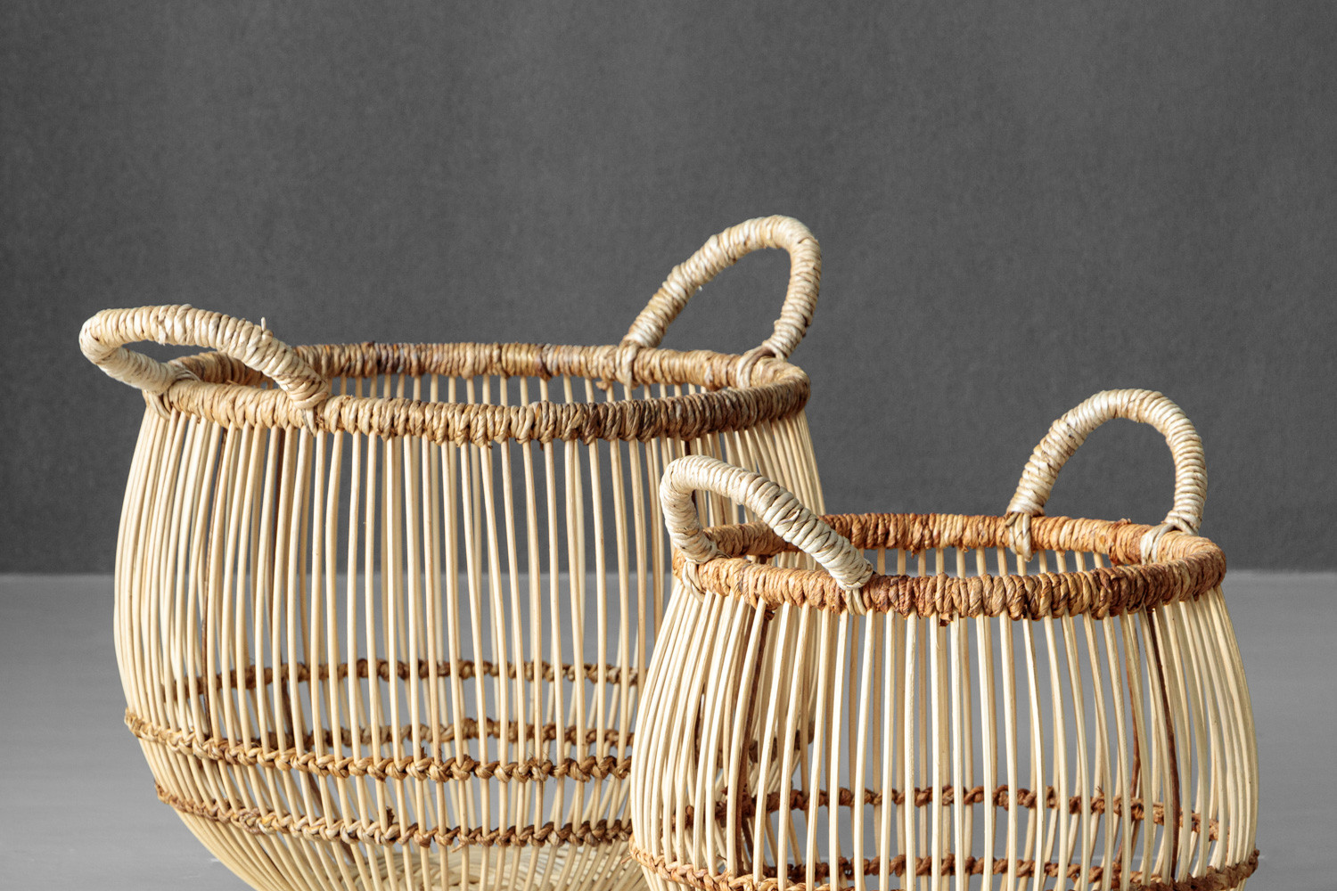 Enhance your home with the Kadoma Basket Set, a perfect blend of functionality and rustic style. These hand-woven rattan baskets feature a mix of black and natural tones that bring warmth and texture to any room, while their sturdy looped handles make them easy to move from place to place. The Kadoma Basket Set is ideal for storing essentials like blankets, toys, and towels, or even as a decorative piece to display your favourite throws or plants.
