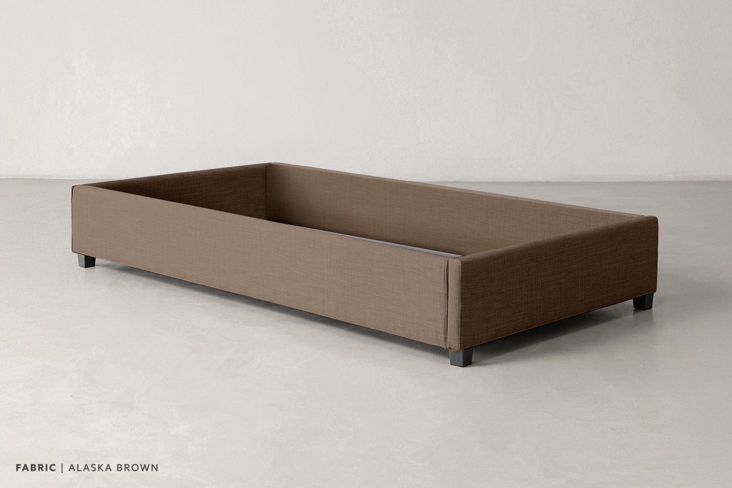 The fully knocked down bed base is easily transported and ready to assemble. The frame surrounds the bed's straight slat base housed in convenient pockets. The Leto fits your mattress inside slightly raised edges to ensure that your mattress is secure and doesn’t slide off of the base itself.