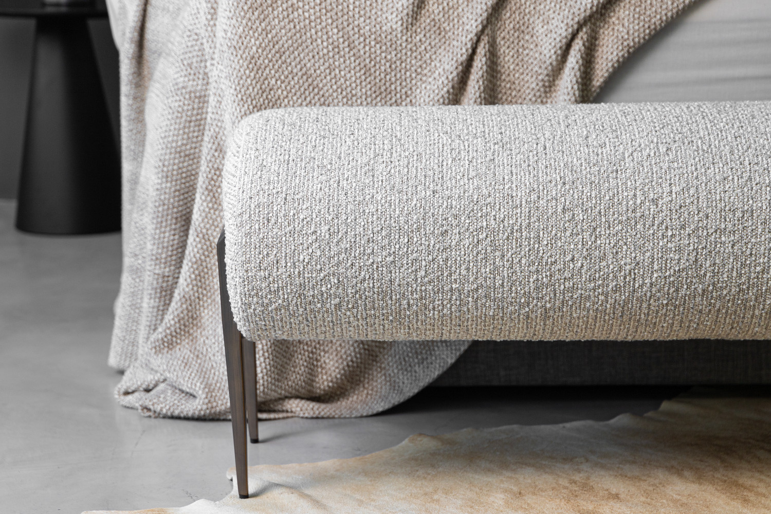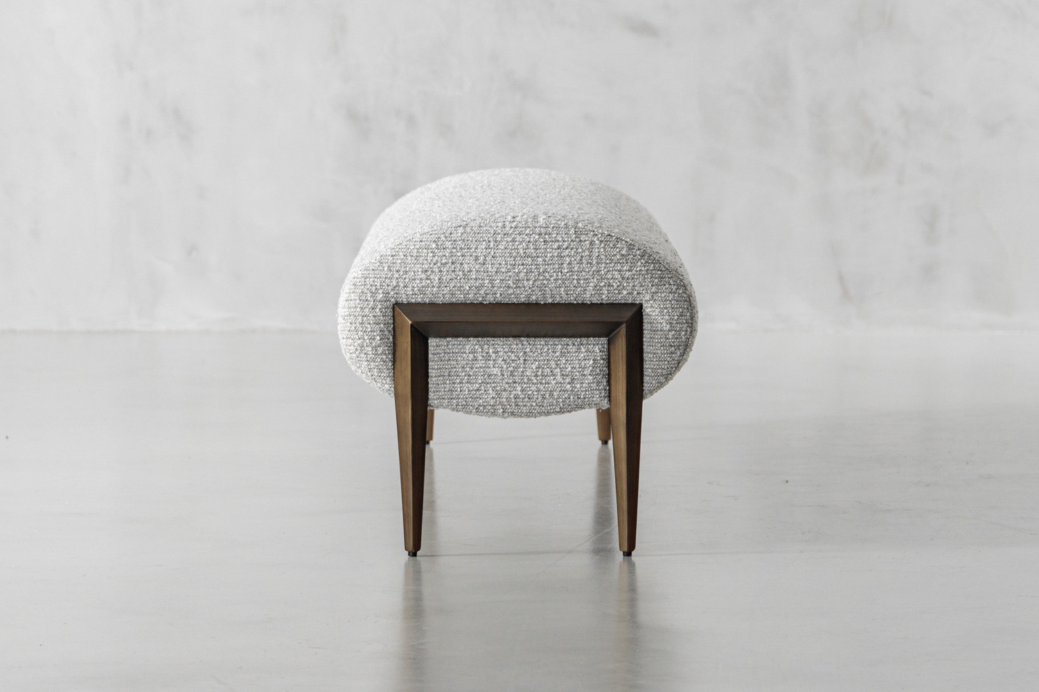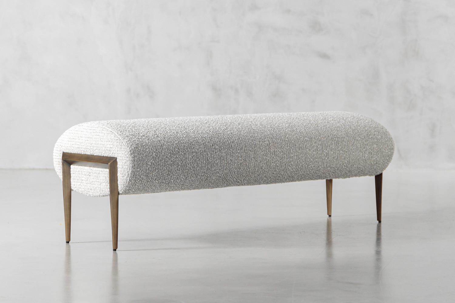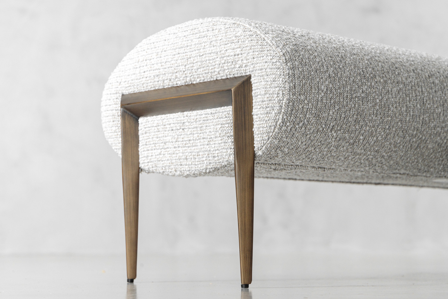 The Eden Bench seamlessly marries comfort and style, marking it as a functional modern piece that's suitable for various settings within your home. Its textured bouclé upholstery and mild steel legs embody the meeting of classical and contemporary aesthetics. The Eden features a rounded shape that is both eye-catching and comfortable.
