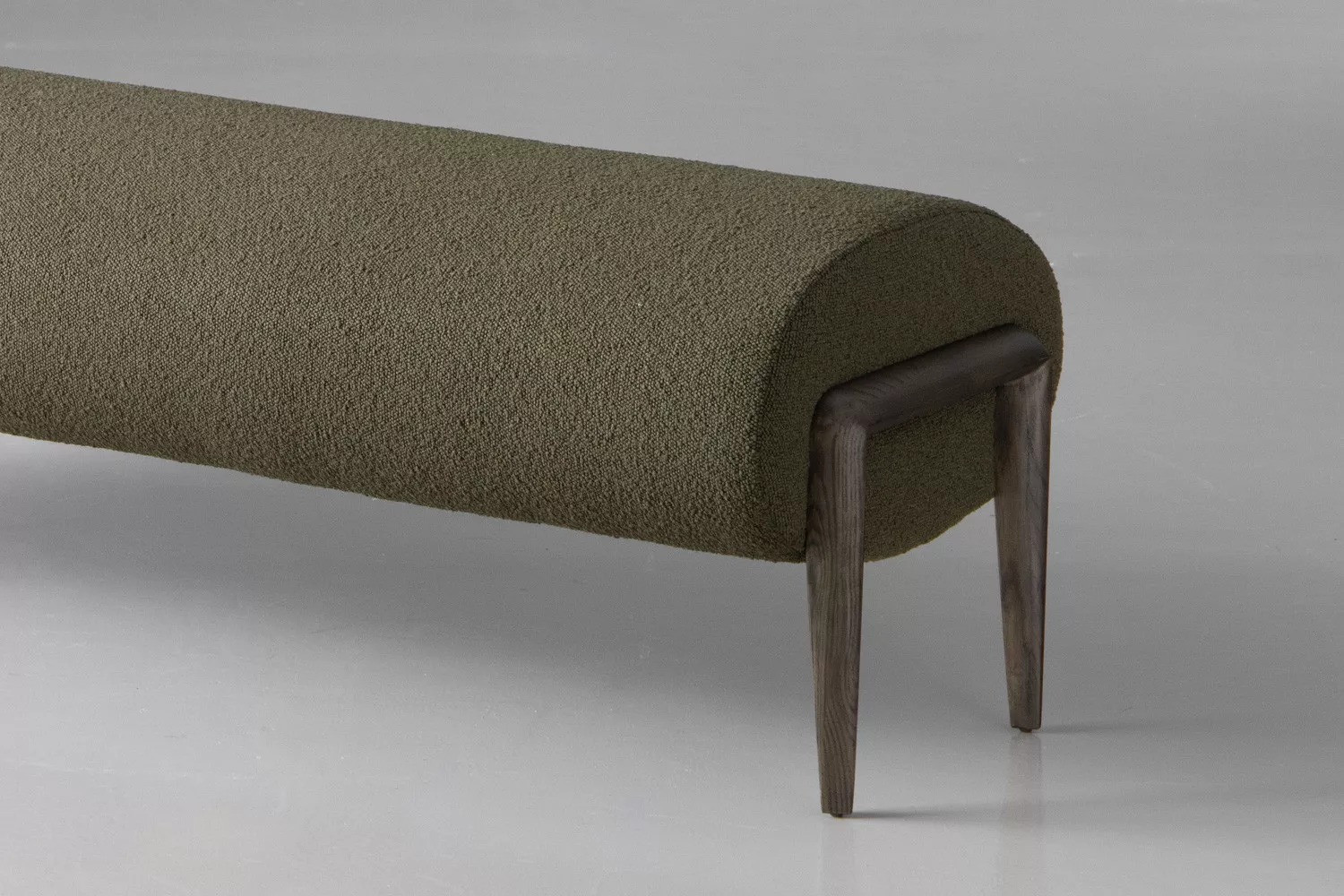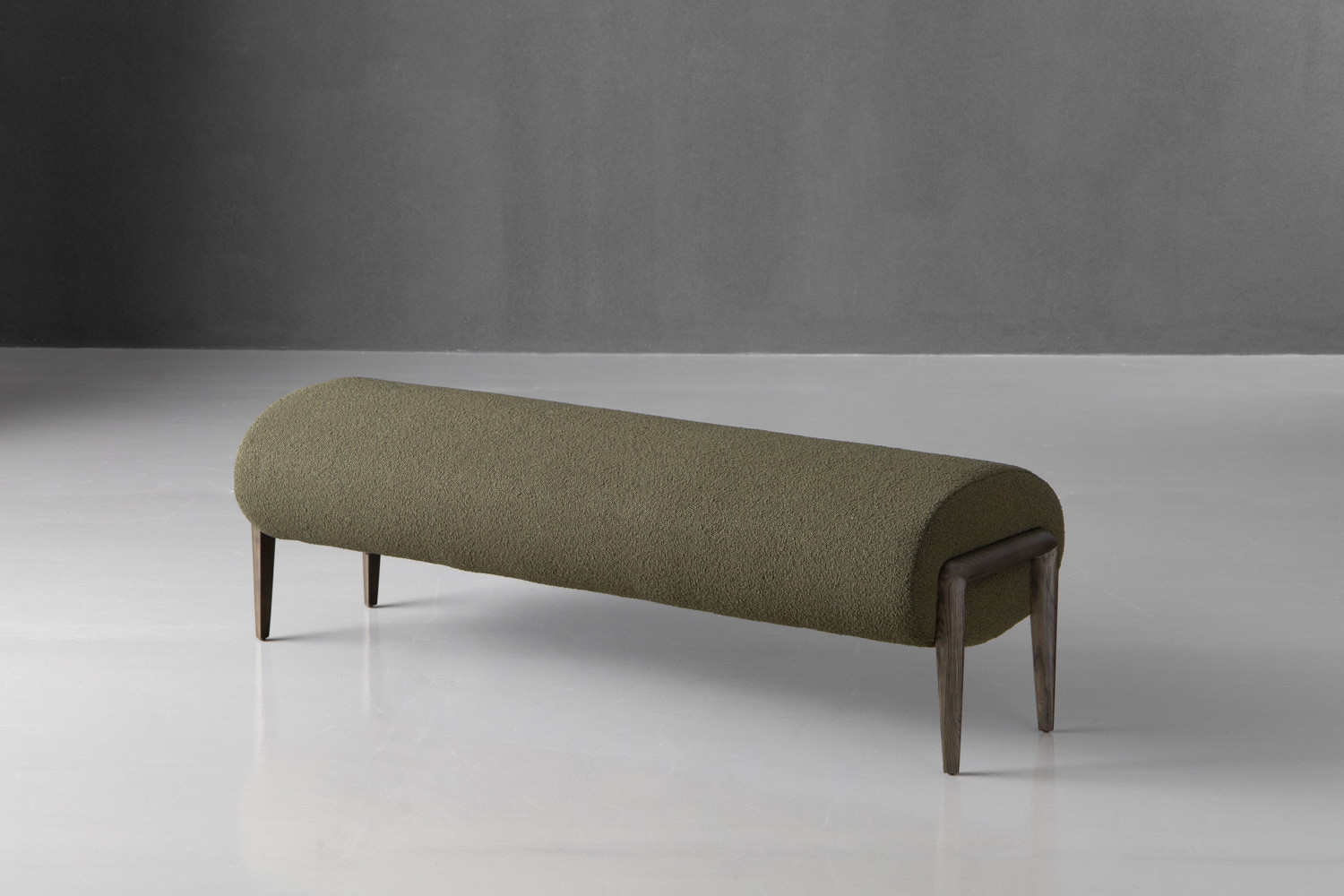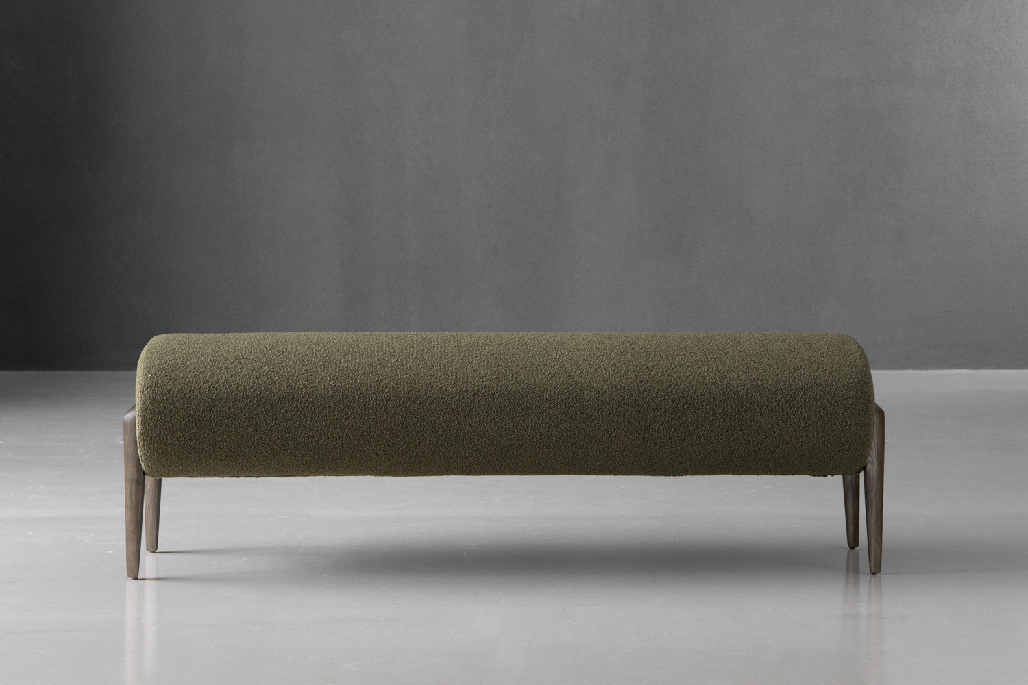 The Eden Bench seamlessly marries comfort and style, marking it as a functional modern piece that's suitable for various settings within your home. Its textured bouclé upholstery and mild steel legs embody the meeting of classical and contemporary aesthetics. The Eden features a rounded shape that is both eye-catching and comfortable.