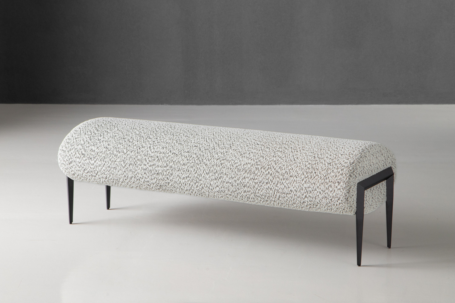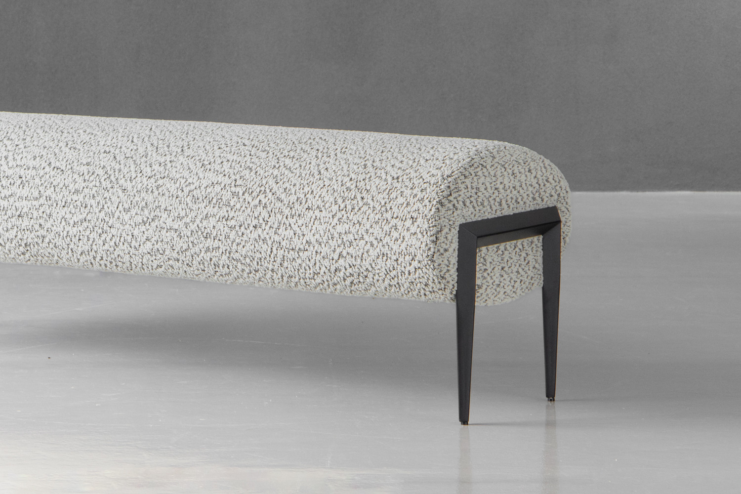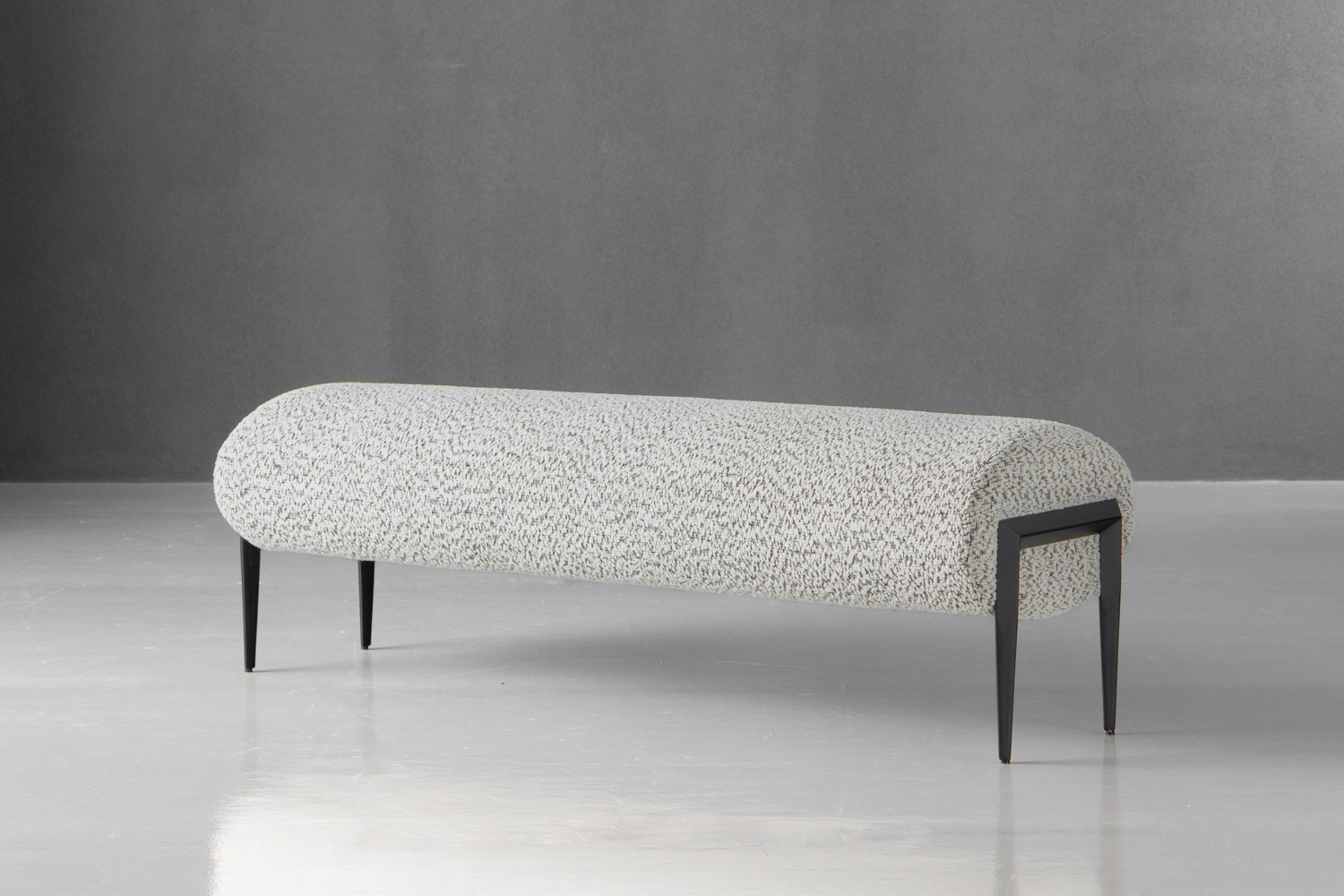 The Eden Bench seamlessly marries comfort and style, marking it as a functional modern piece that's suitable for various settings within your home. Its textured boucle upholstery and mild steel legs embody the meeting of classical and contemporary aesthetics. The Eden features a rounded shape that is both eye-catching and comfortable.