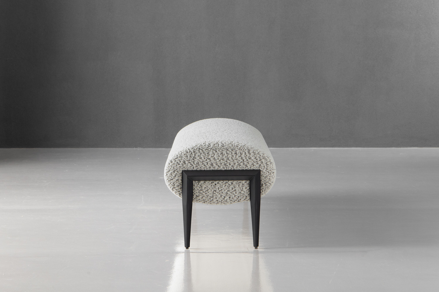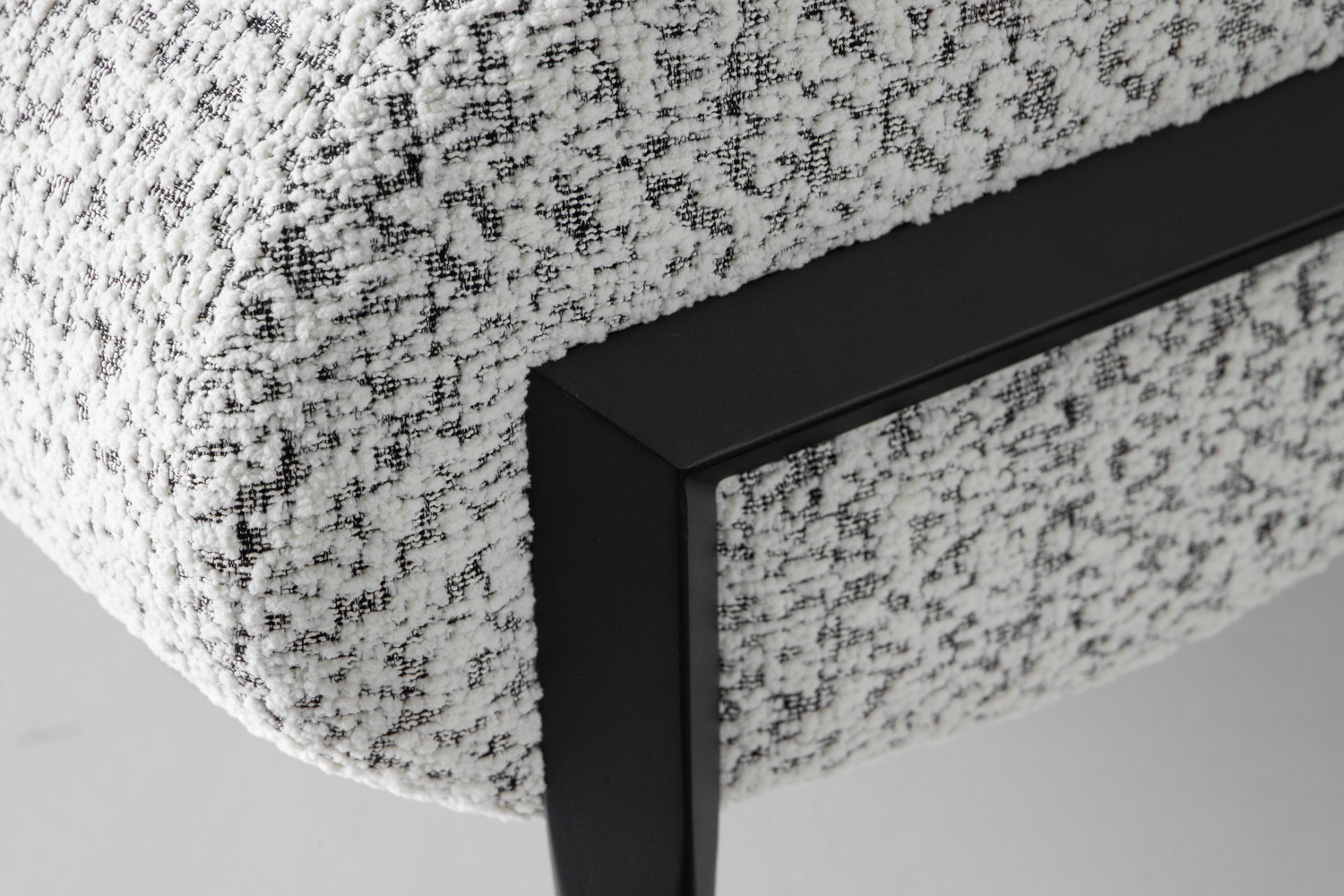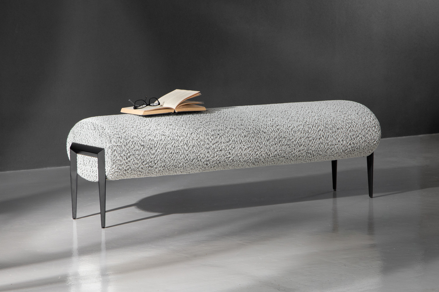 The Eden Bench seamlessly marries comfort and style, marking it as a functional modern piece that's suitable for various settings within your home. Its textured boucle upholstery and mild steel legs embody the meeting of classical and contemporary aesthetics. The Eden features a rounded shape that is both eye-catching and comfortable.