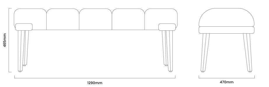 1290mm (L) x 470mm (W) x 465mm (H)