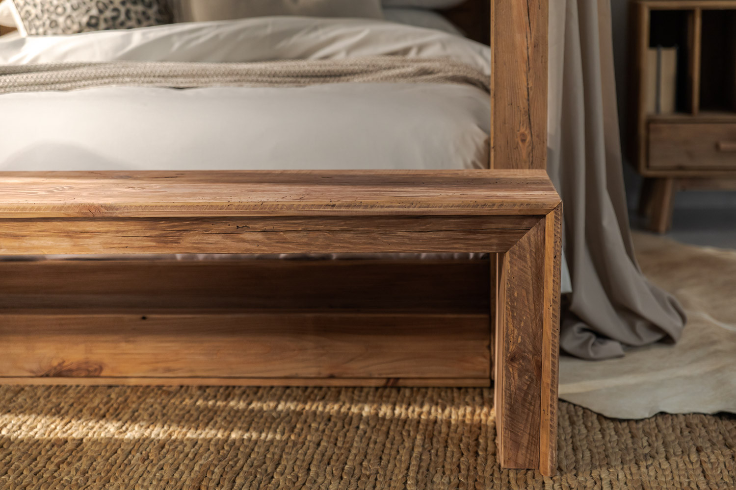 Designed to add a unique and rustic style to any area, the Volantis bench is crafted from reclaimed pine featuring warm natural tones and rustic finishes. This range provides both sustainability & durability, making this the ideal furniture choice for your dining, living or bedroom.