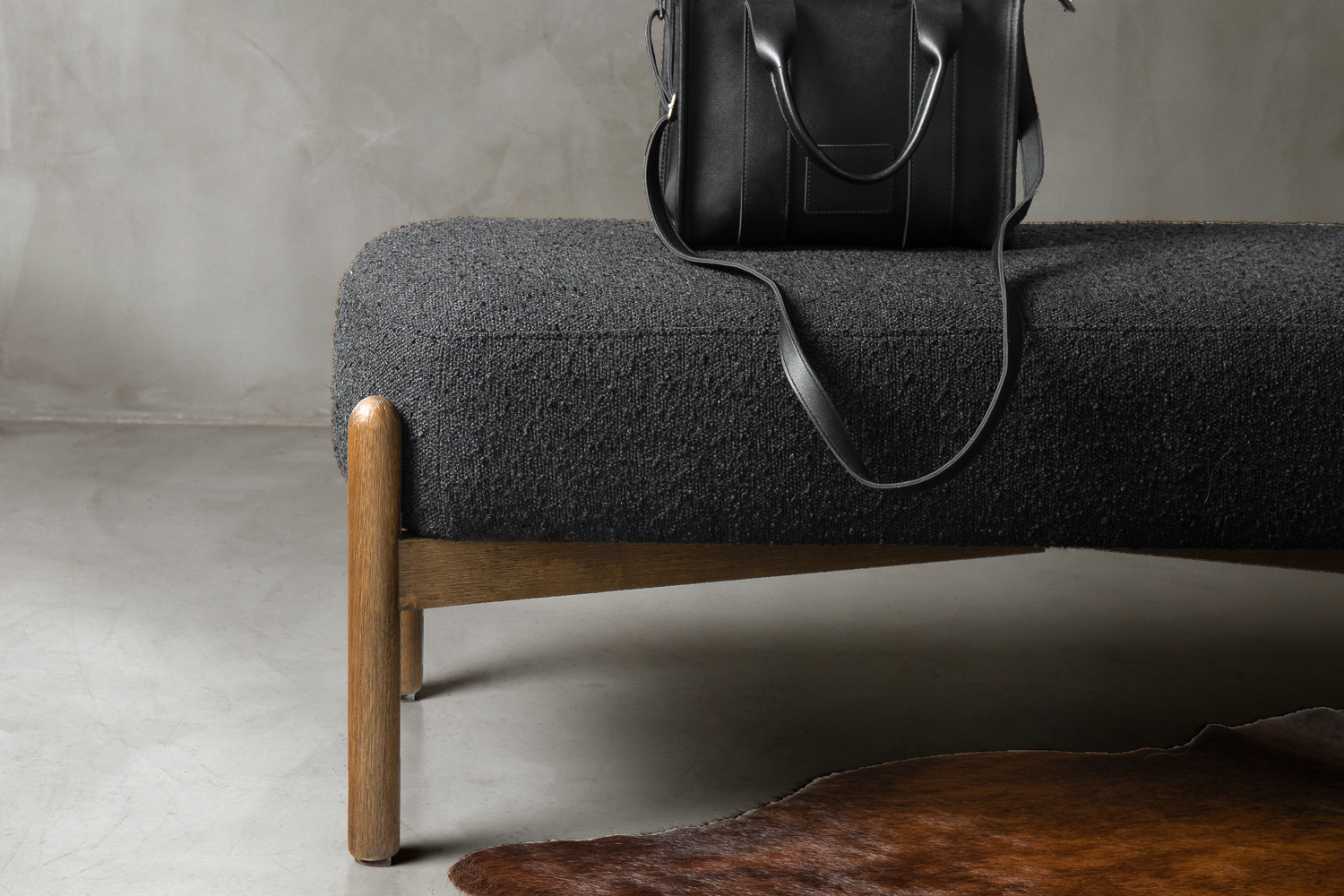 The Colmar Bench embodies elegant design with its polyester boucle upholstery and natural, solid rubberwood frame. It was crafted to enhance luxurious spaces, offering both superior comfort and a statement of exquisite taste. It promises to elevate any room with its undeniable minimalist charm.