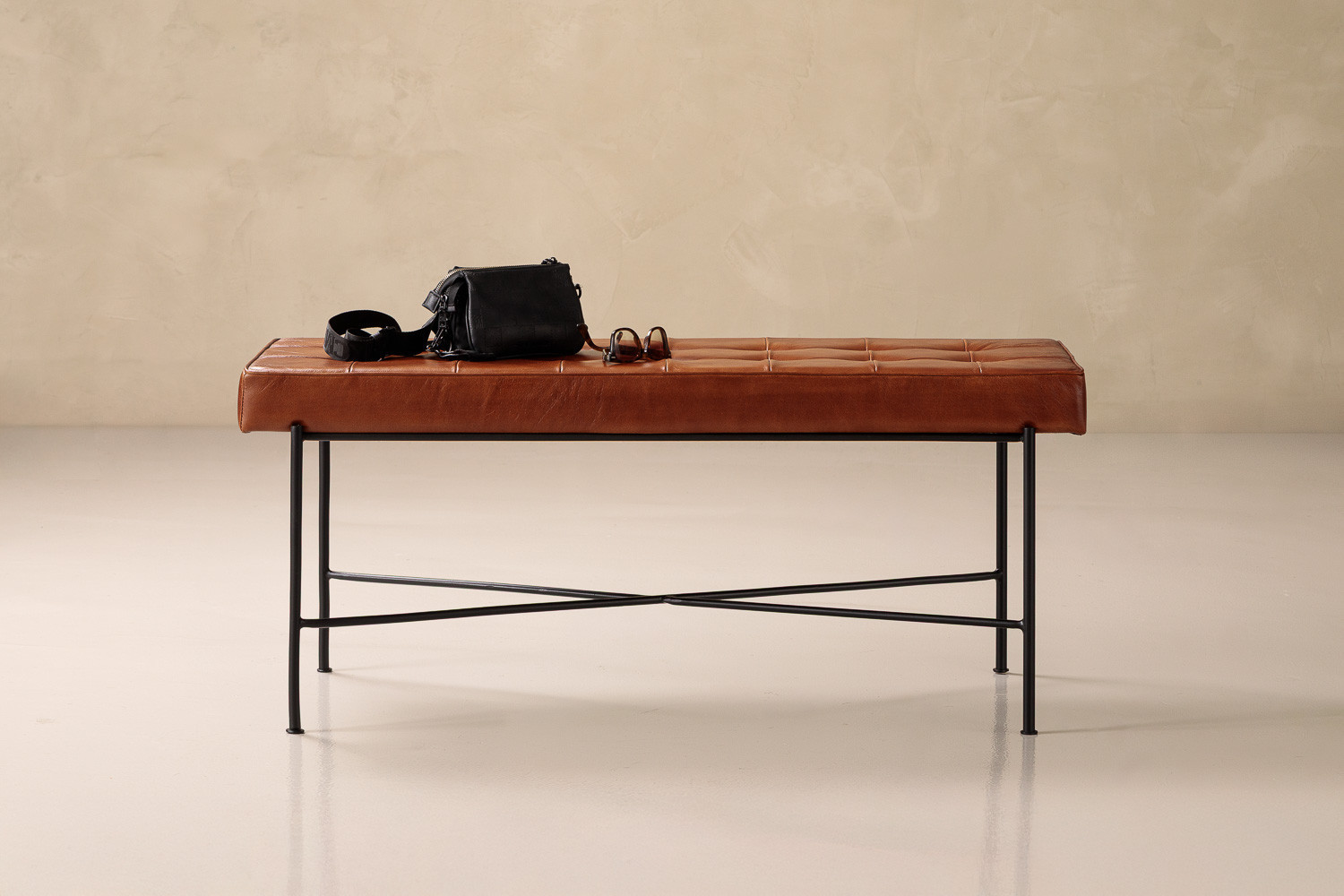 The black mild steel frame introduces a touch of industrial flair, while its clean lines maintain a minimalist profile that fits effortlessly into modern, rustic, or eclectic spaces. Ideal for an entryway as a stylish spot to remove shoes, or at the end of a bed for added function and flair, the Connery Bench offers warmth and sophistication wherever it’s placed.