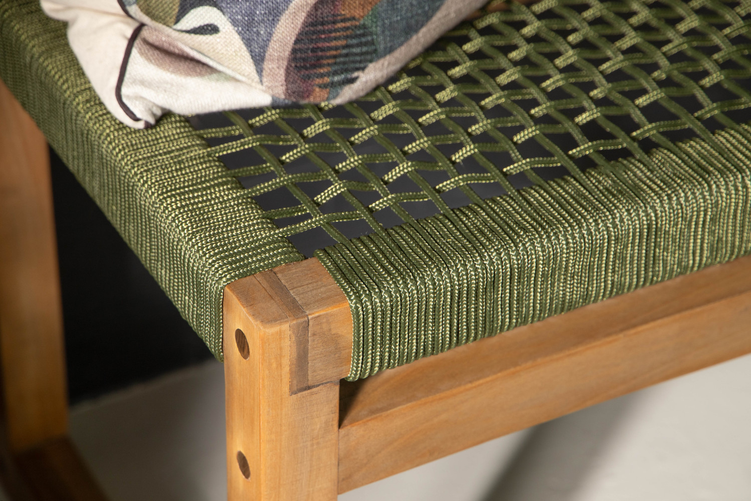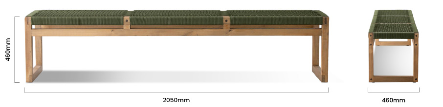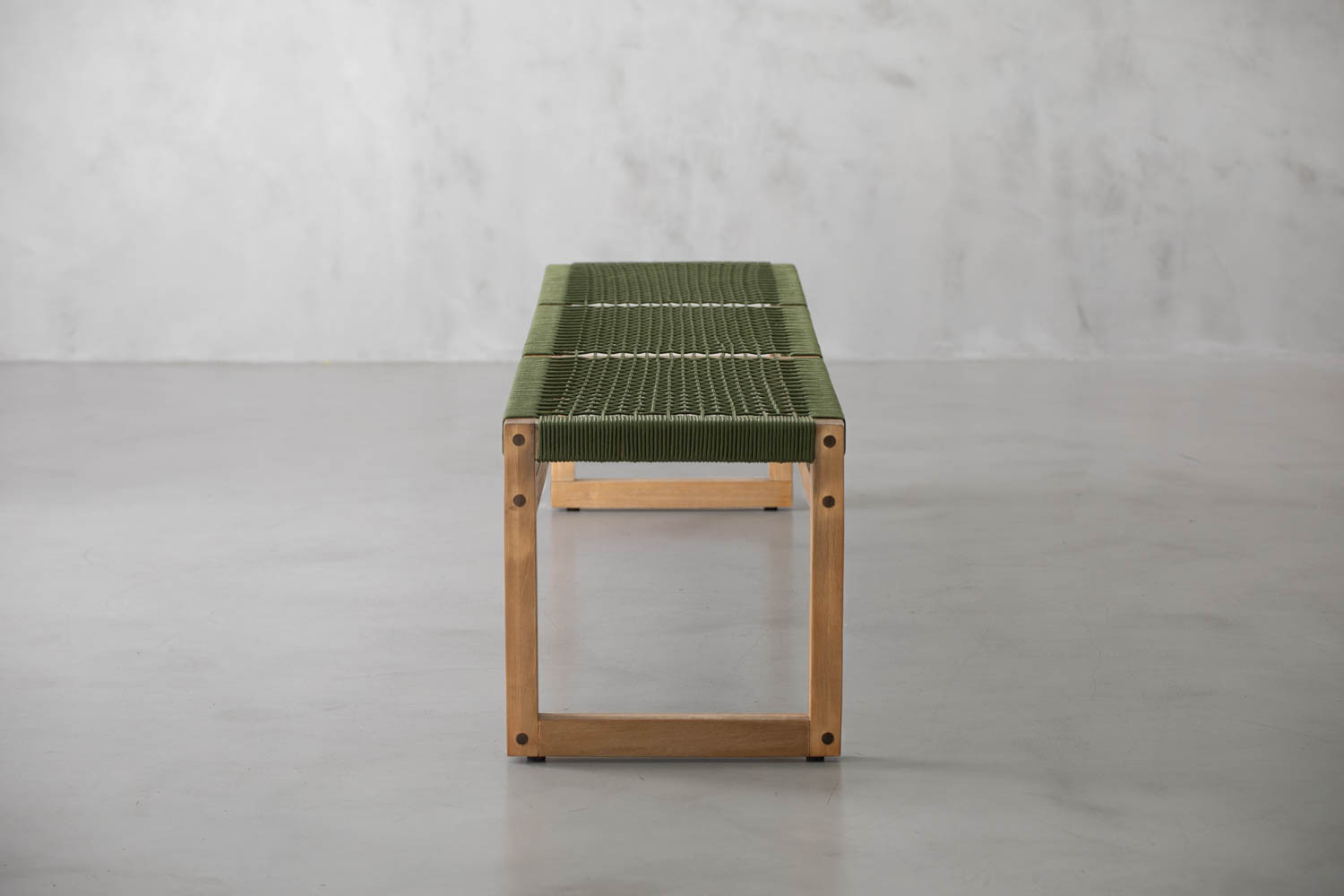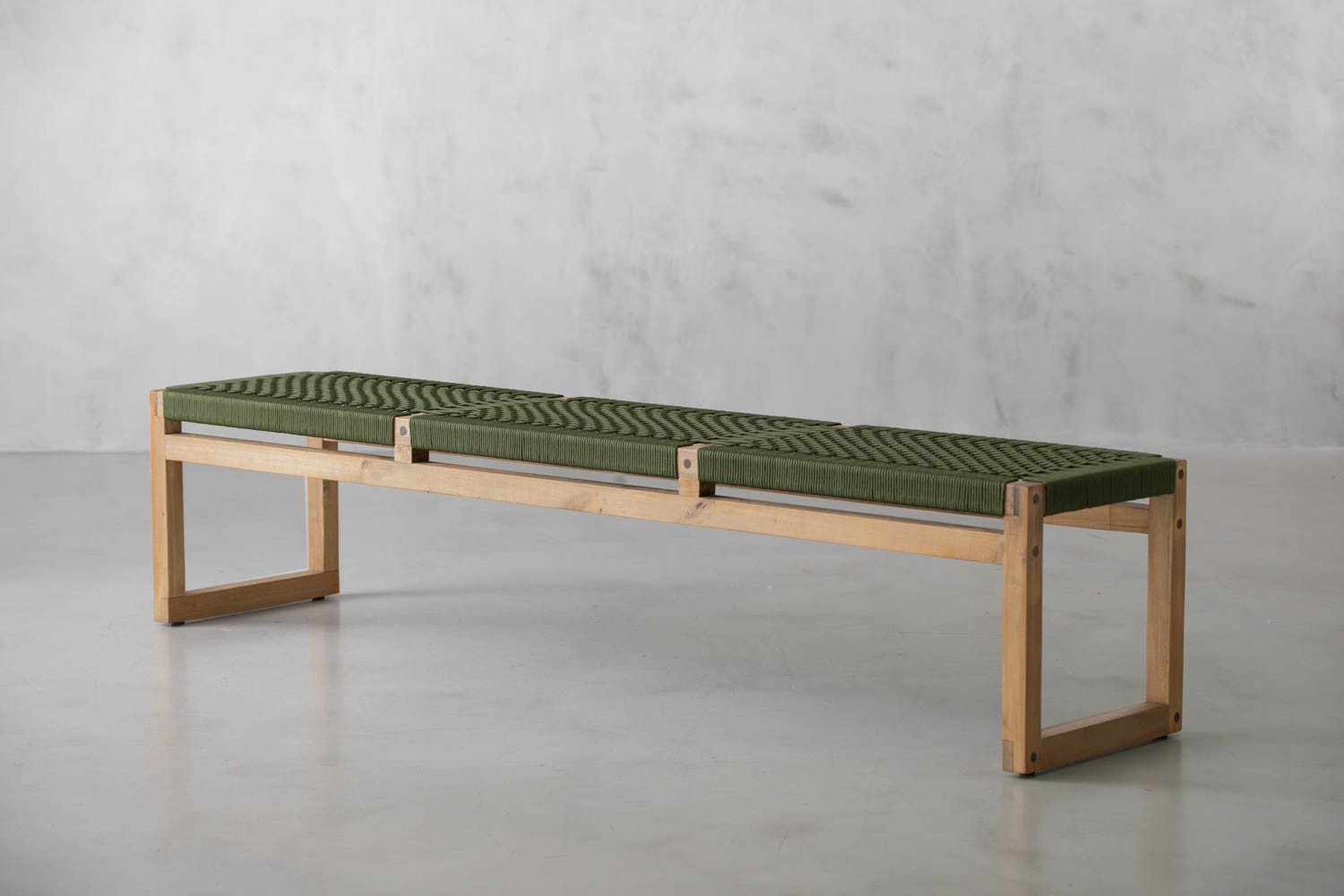 Elevate your home with the Kingston Bench's sleek lines and refined military green weave. Its poplar framework introduces an organic touch, blending seamlessly into modern interiors. The high tea finish allows for a unique patina, giving each table a unique hue.