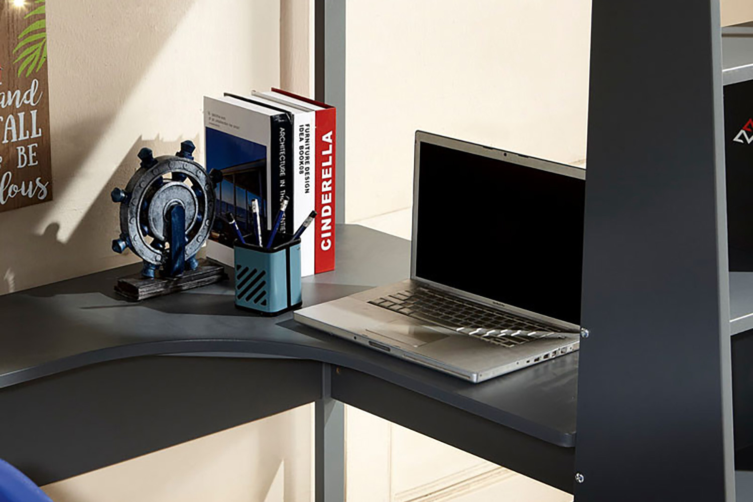 The Meteor Study Bunk Bed is a fun and practical way to combine your kids’ sleep and work space, giving them a convenient and private place to do their homework or studying. The built-in corner desk provides ample space for a laptop and study materials, with plenty of space for a chair next to the lower bunk.