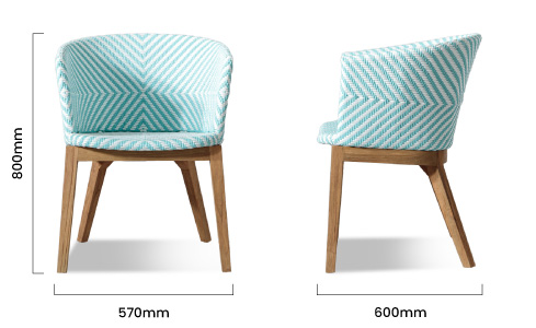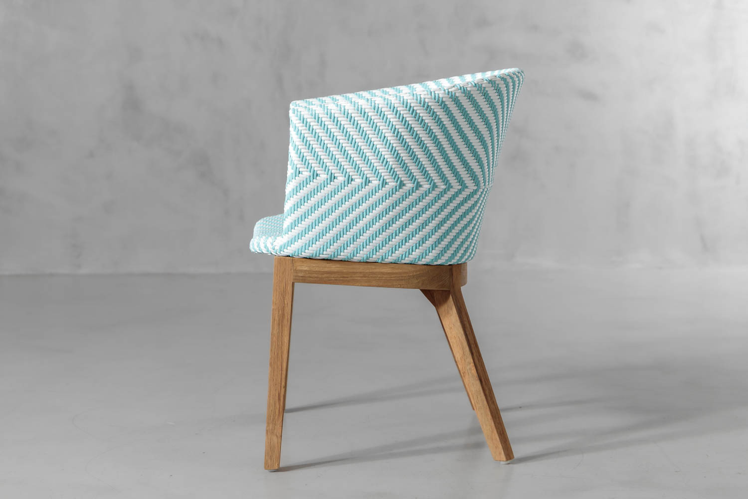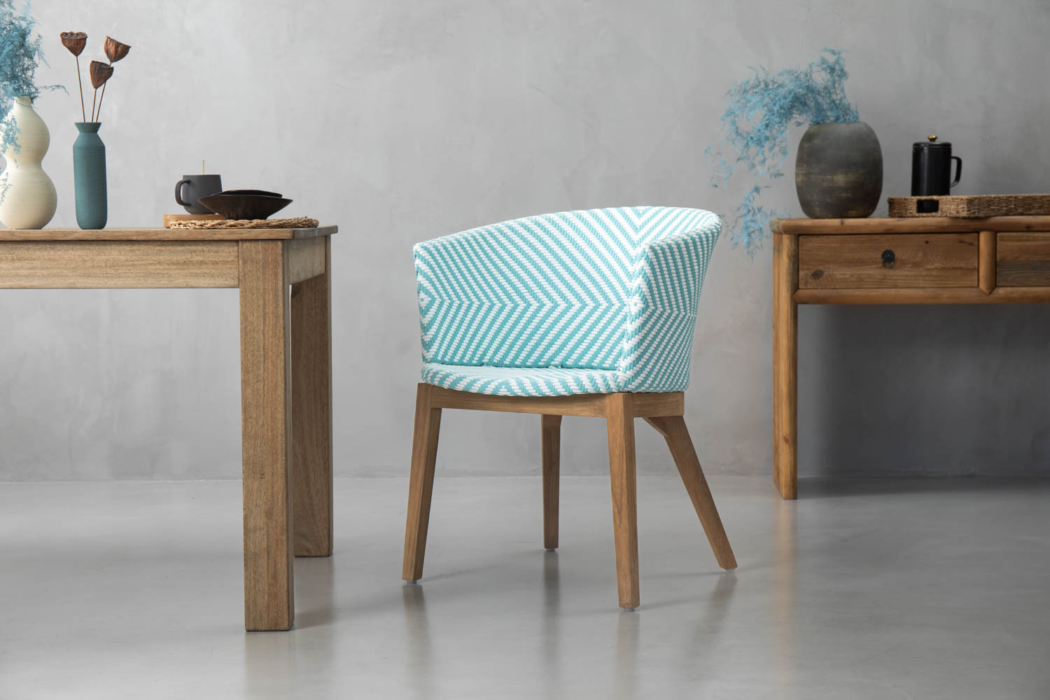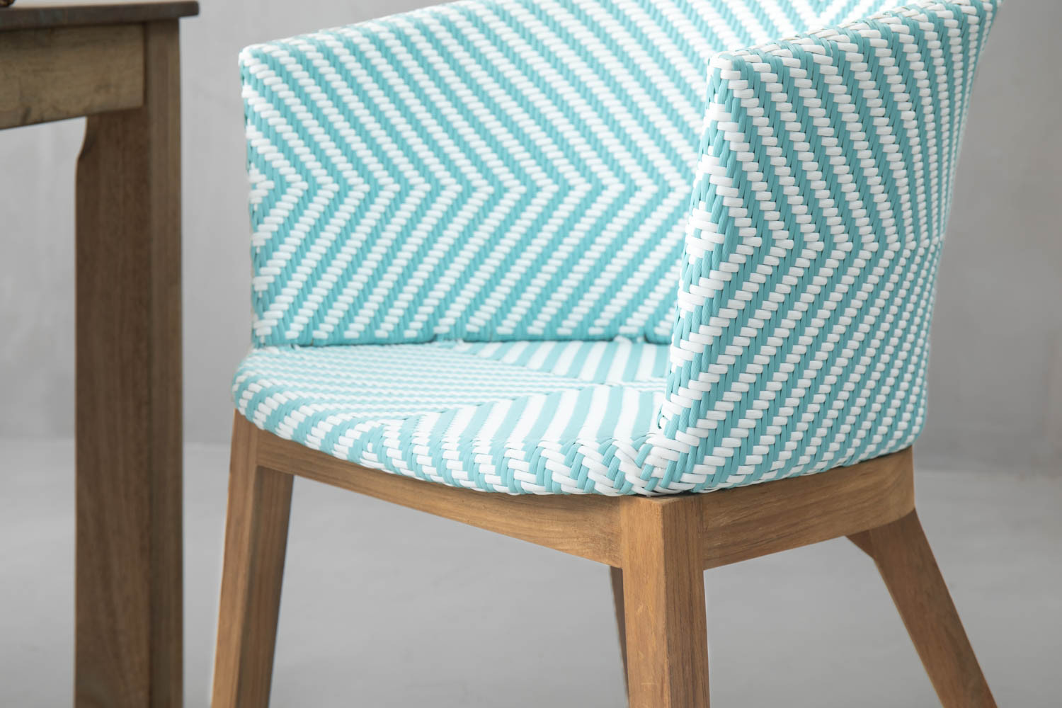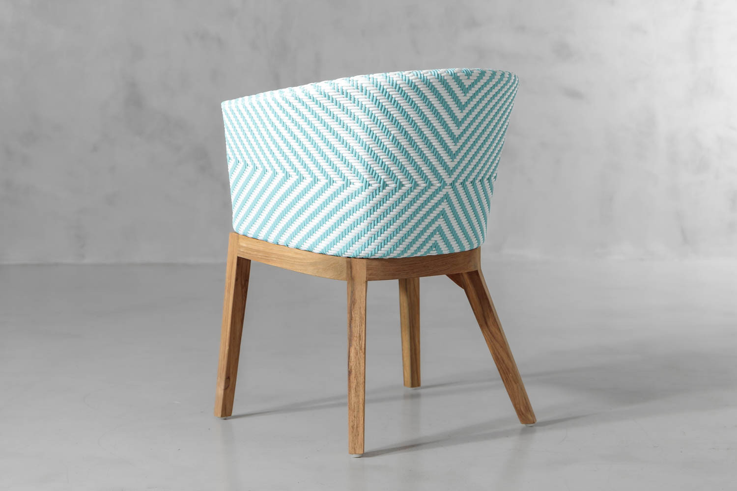 The Cala Dining Chair adds a bold contemporary twist to the classic French bistro chair design. Featuring a two-toned woven PE rattan seat in a tubbed seat design, this stylish dining chair is full of unique and vibrant charm. The Cala combines Teak wood legs and a PE rattan seat to bring an eclectic touch of natural materials to your dining, patio, or occasional space.