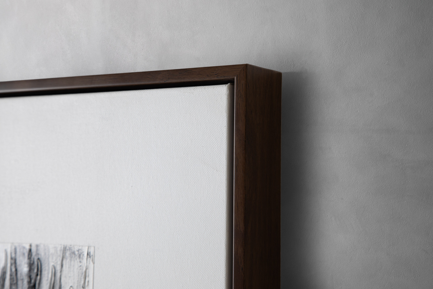 Make a refined statement with the Ember Hand Painted Canvas. Layered strokes in soft white, charcoal, and ash create tactile depth, balanced by a slim shadowline frame for a gallery finish. Each piece is individually hand painted and ready to hang.