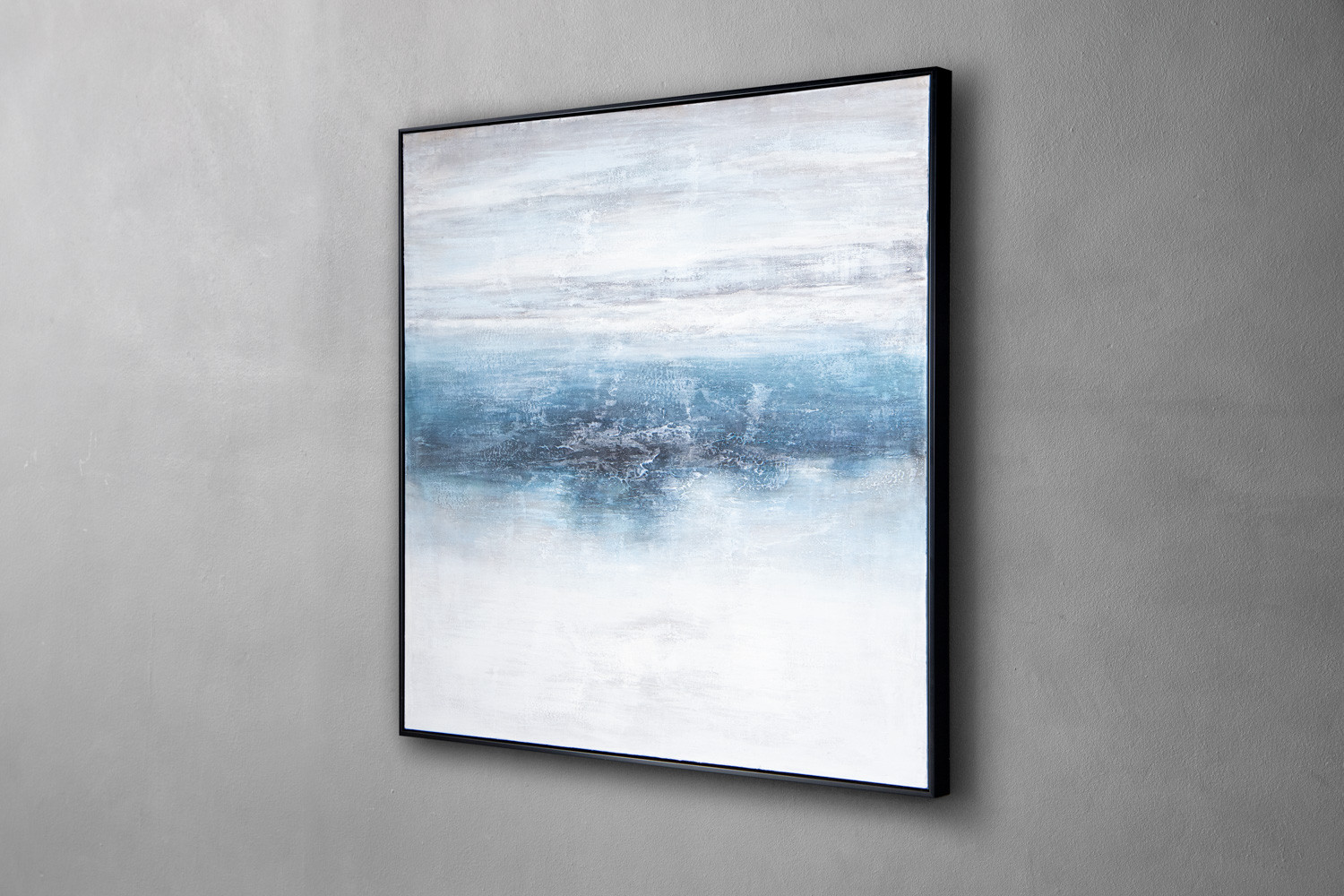 Encased in a floating black frame, this art piece provides a sleek modern finish, allowing the textures to take centre stage. The deep layers within each brushstroke capture light beautifully, emphasising the artwork’s tactile appeal and encouraging viewers to explore its composition. The Arctic doesn’t just elevate a room—it transforms it, adding a touch of modern sophistication that appeals to minimalists and art enthusiasts alike.