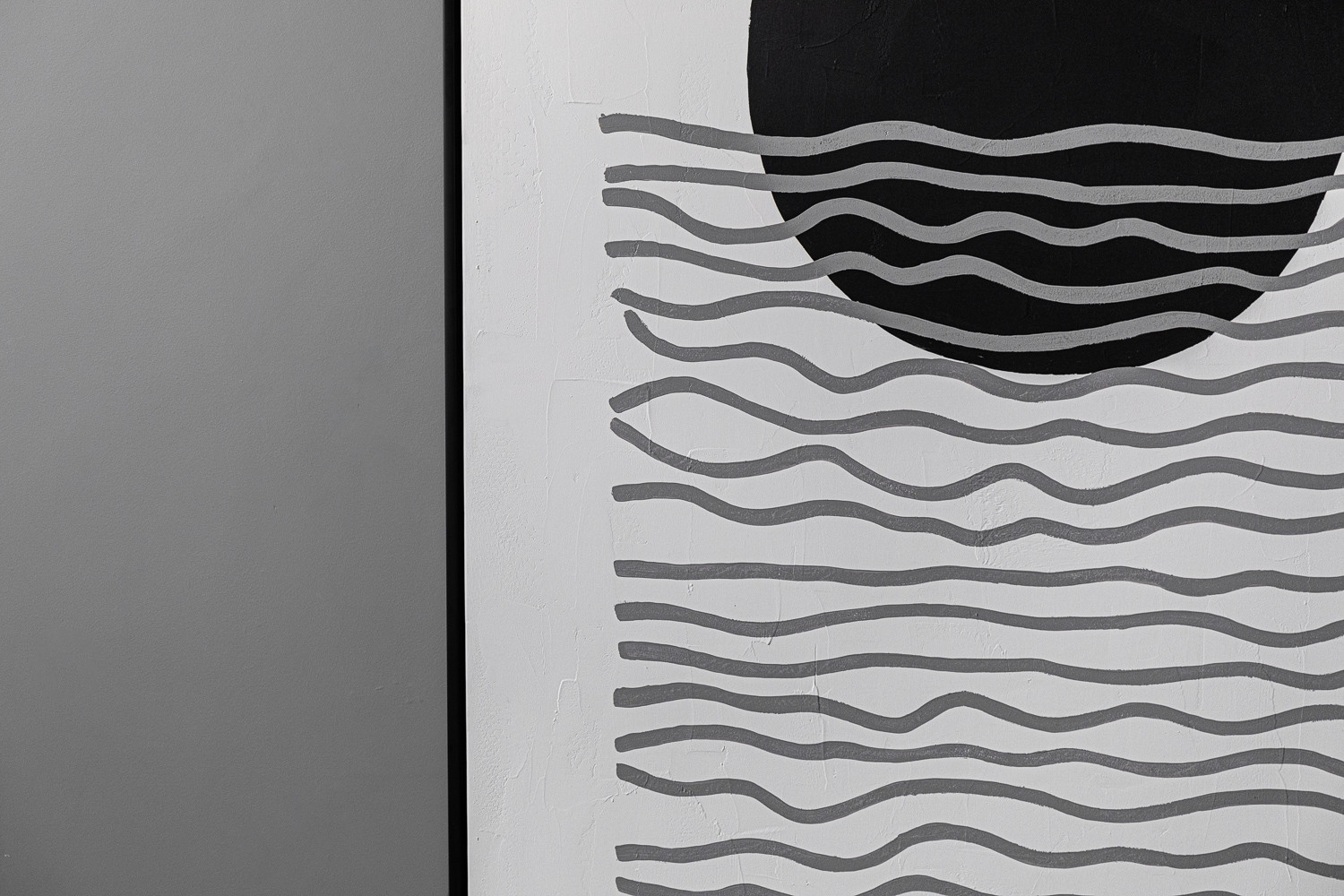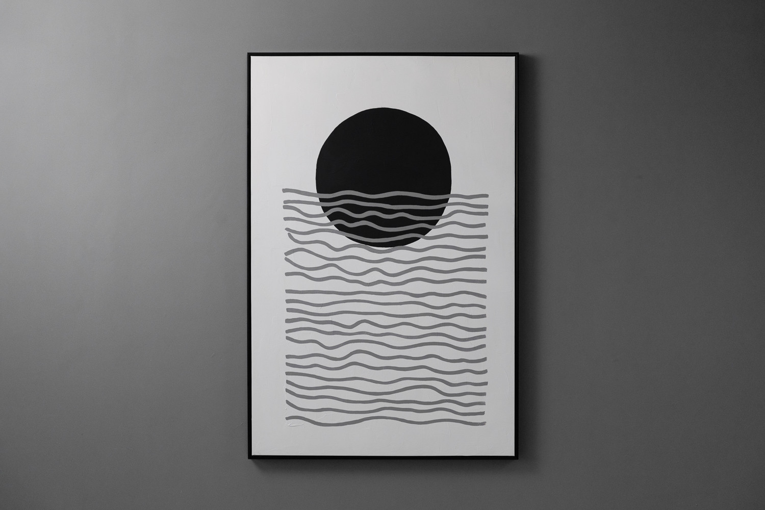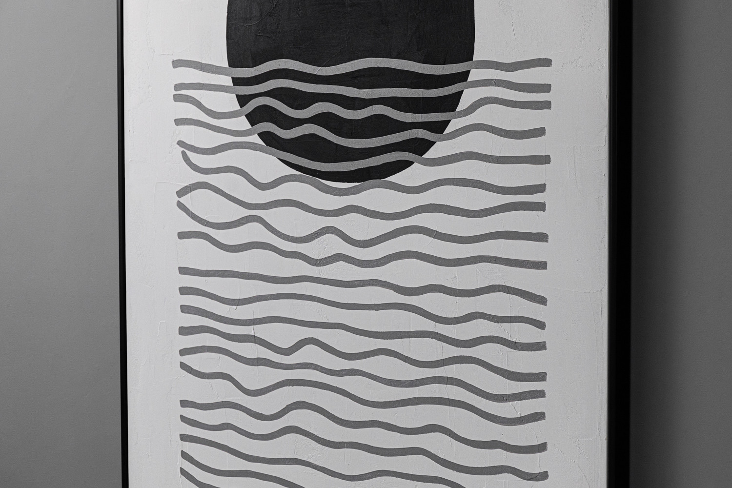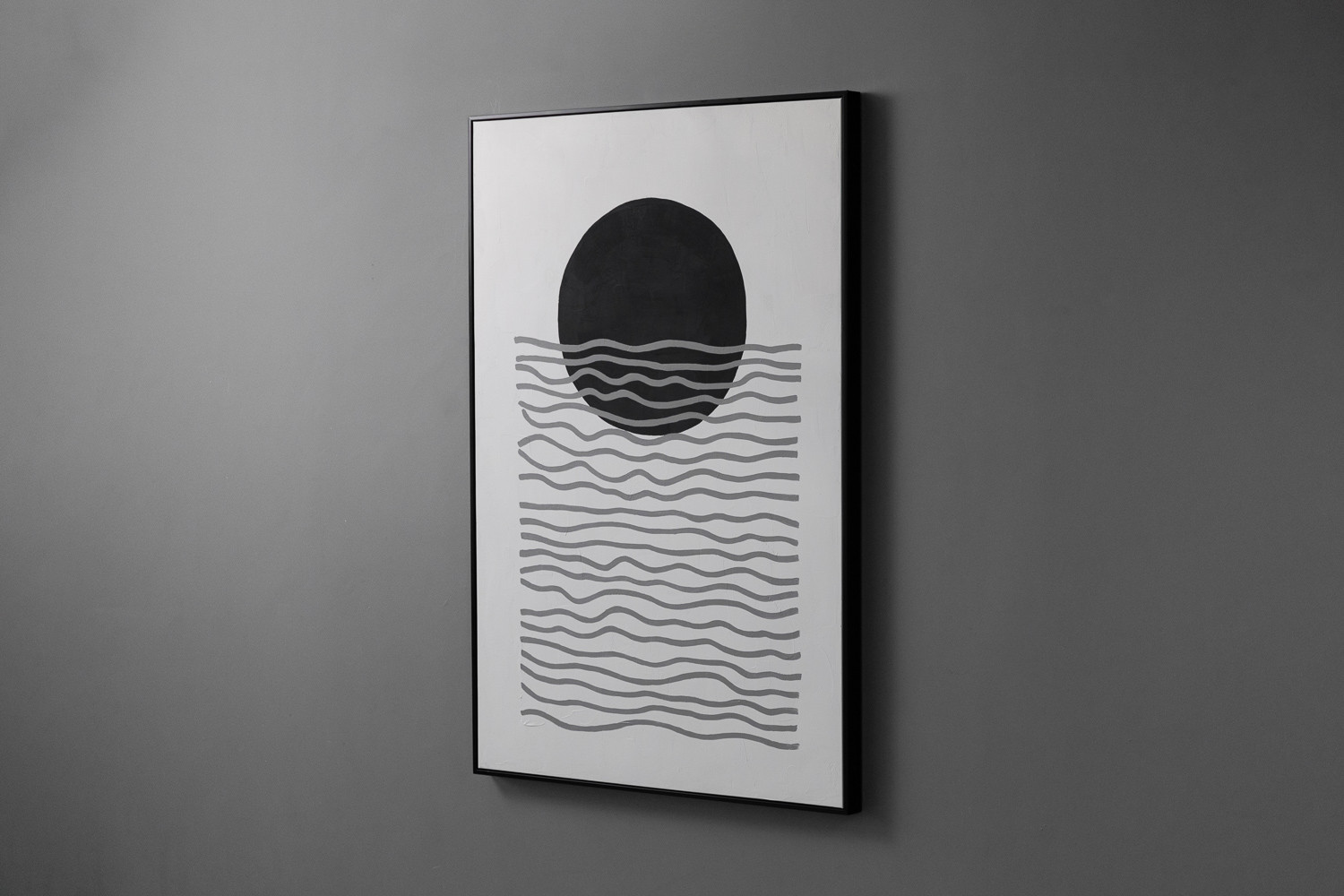 The Okello Rising is a distinguished hand-painted canvas, where serene waves meet a bold, ascending sphere. This piece is a perfect selection to introduce artful inspiration and contemporary grace into your living space.