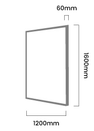 1600mm (L) x 60mm (W) x 1200mm (H)