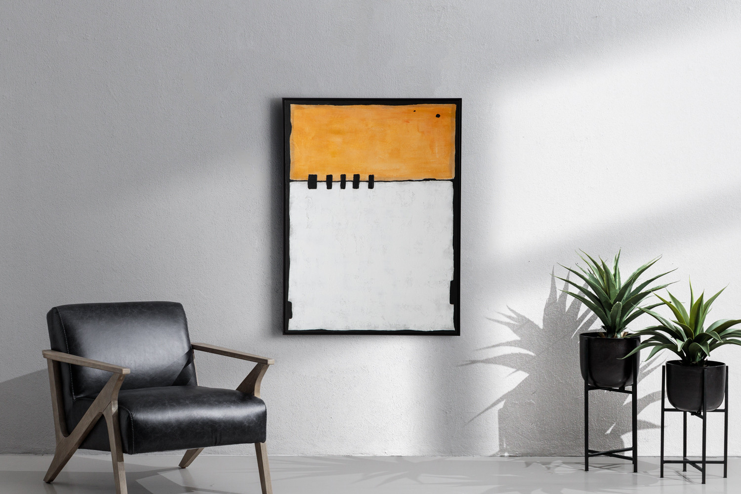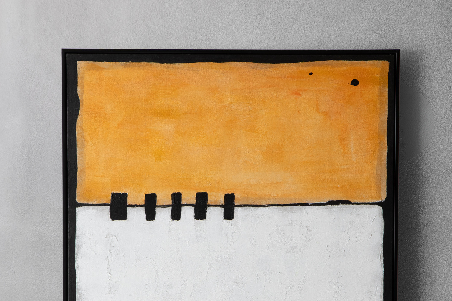 Warm, minimal, and beautifully tactile, the Tawny Hand Painted Canvas Art balances sunlit ochre and white blocks with minimalist black accents. Hand-painted and framed for a gallery finish, this abstract piece adds quiet confidence to your contemporary décor. Let it fill your wall space with artistic appeal.