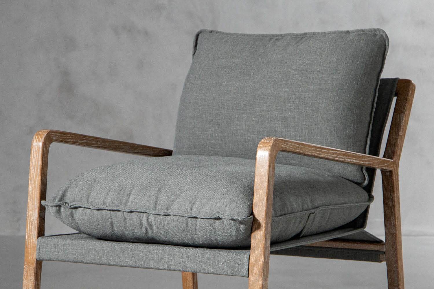 The Clyde Armchair brings a timeless class to your space. This laid-back linen chair features a beautifully crafted Ash wood frame and rich textured seating. The Clyde is unique in its design with a 100% linen weaving supporting plush cushions for a supremely comforting experience.