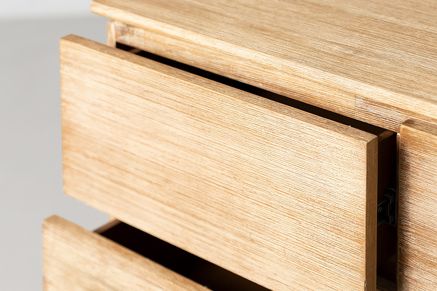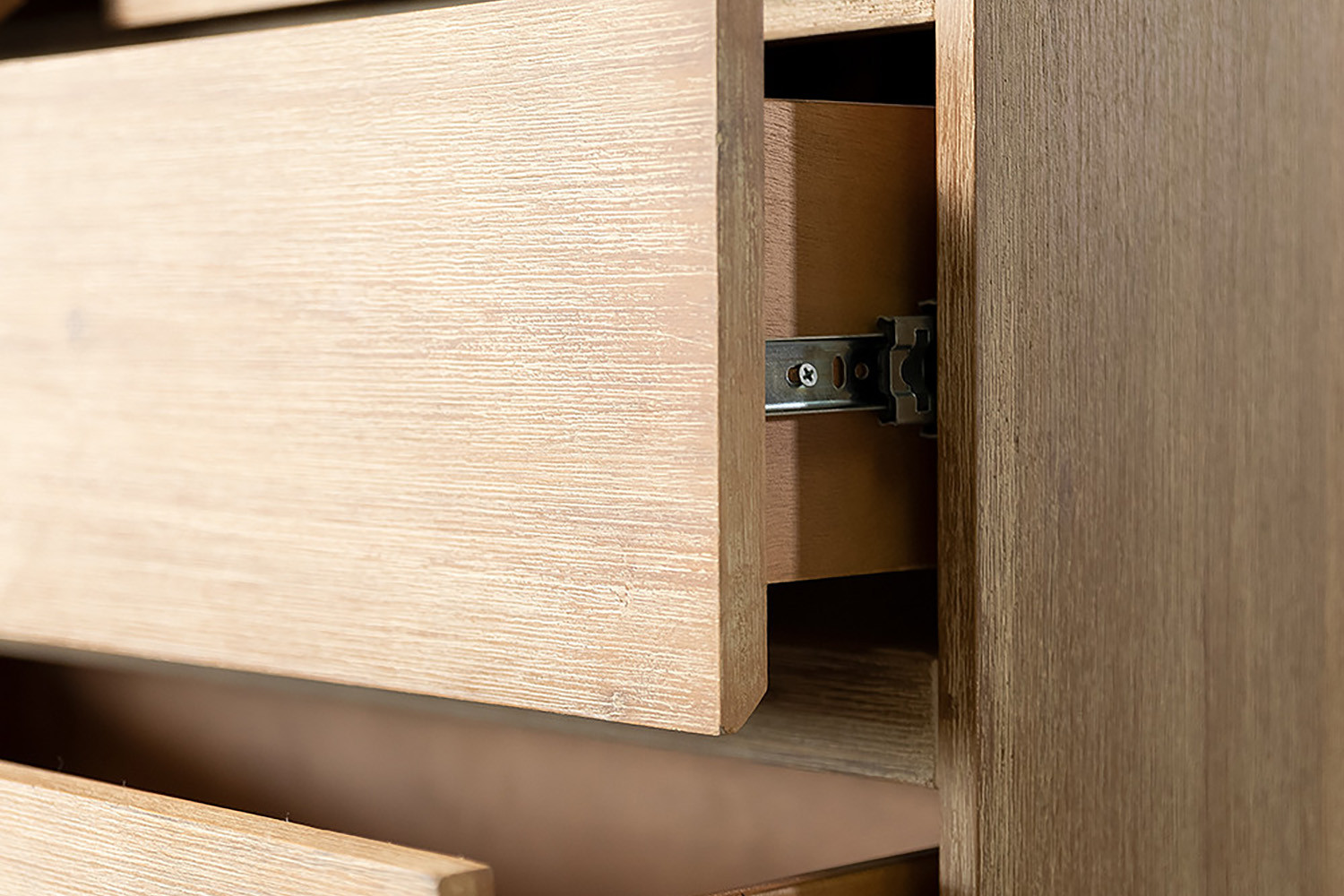 The chest of drawers is constructed from solid Acacia wood – a dense hardwood with exceptional durability – with Acacia veneers that provides a superior aesthetic and protects the wood from expanding or splitting due to temperature variance. The wire brush technique works beautifully to bring out the unique grain of this wood, while giving it a slightly weathered look that will hide any accidental scratches.