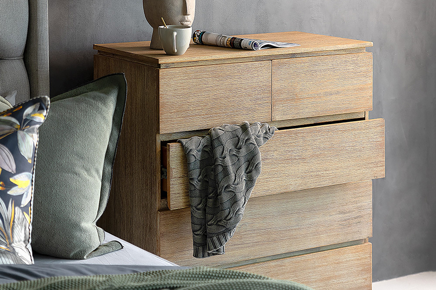 With its beautiful design and warm tones, the Catalan Chest of Drawers offers a laid-back contemporary feel that will bring a sense of solidity and calm to your bedroom. Four generous drawers provide all the storage you need for socks, clothes and all your bedroom essentials.