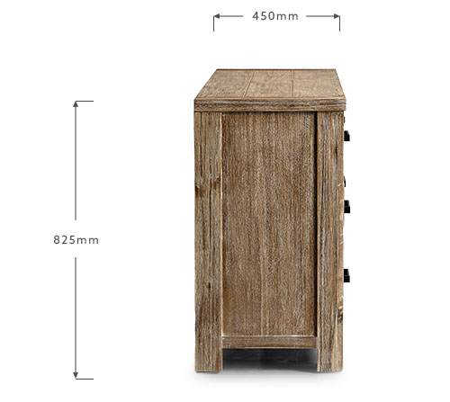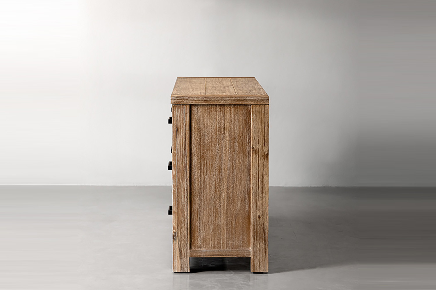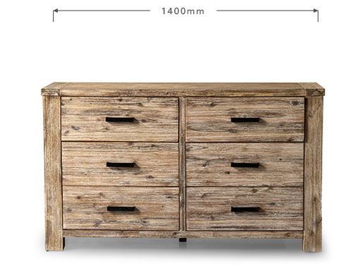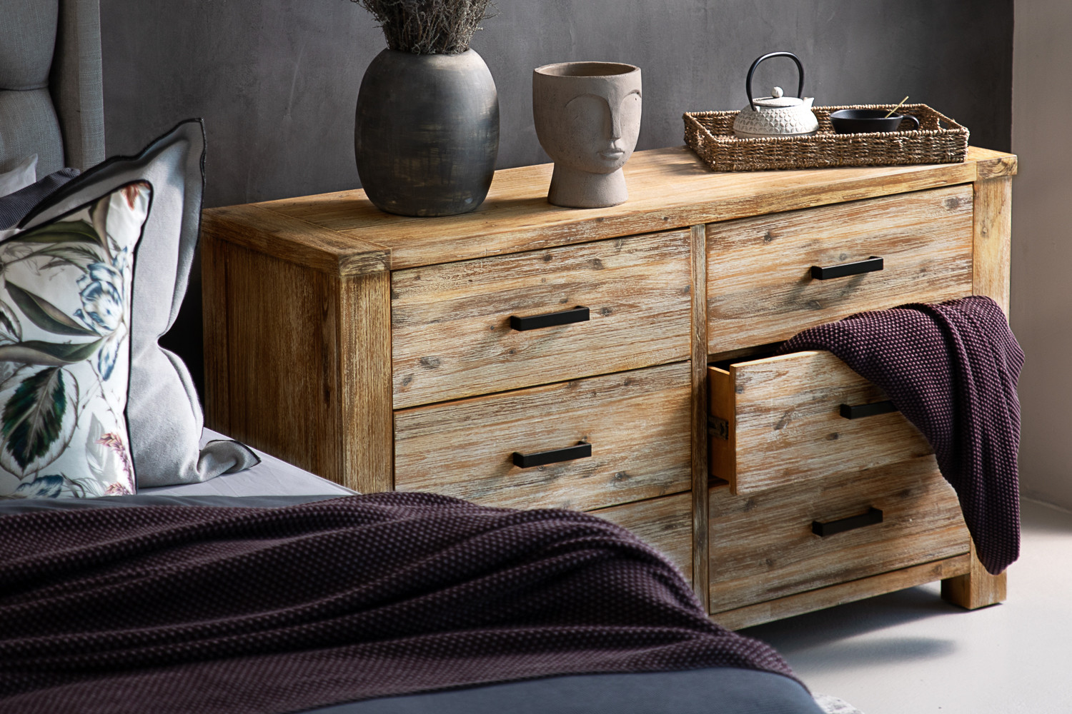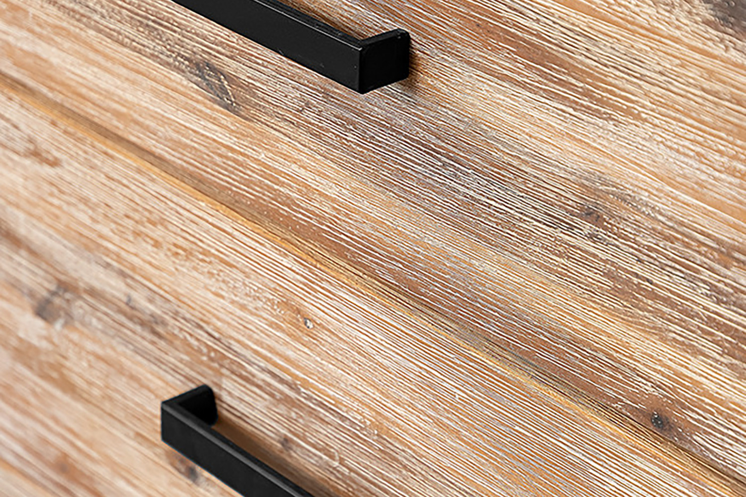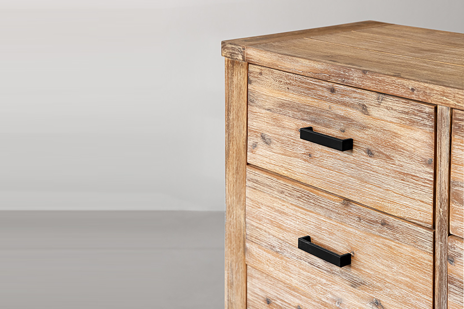 The chest of drawers is constructed from solid Acacia wood – a dense hardwood with exceptional durability – that provides a superior aesthetic and protects the wood from expanding or splitting due to temperature variance. The wire brush technique works beautifully to bring out the unique grain of this wood, while giving it a slightly weathered look that will hide any accidental scratches.
