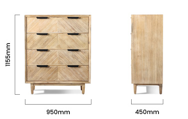 Elevate your room's organisation with the McKenna Chest of Drawers. Place it against a neutral backdrop to showcase its natural allure, while using its ample storage for a clutter-free haven.
