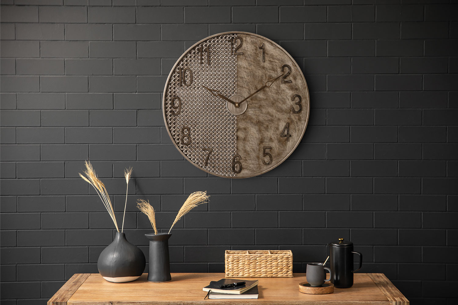 Crafted entirely from sturdy mild steel, the Blecher Wall Clock features a rich antique bronze finish that adds warmth and character to any space. Its timeless design complements industrial, rustic, or traditional interiors. Ideal above a fireplace, in a home office, or on a statement wall, it adds both style and practicality. Pair with wooden accents, leather furnishings, or warm-toned décor for a harmonious, curated look.