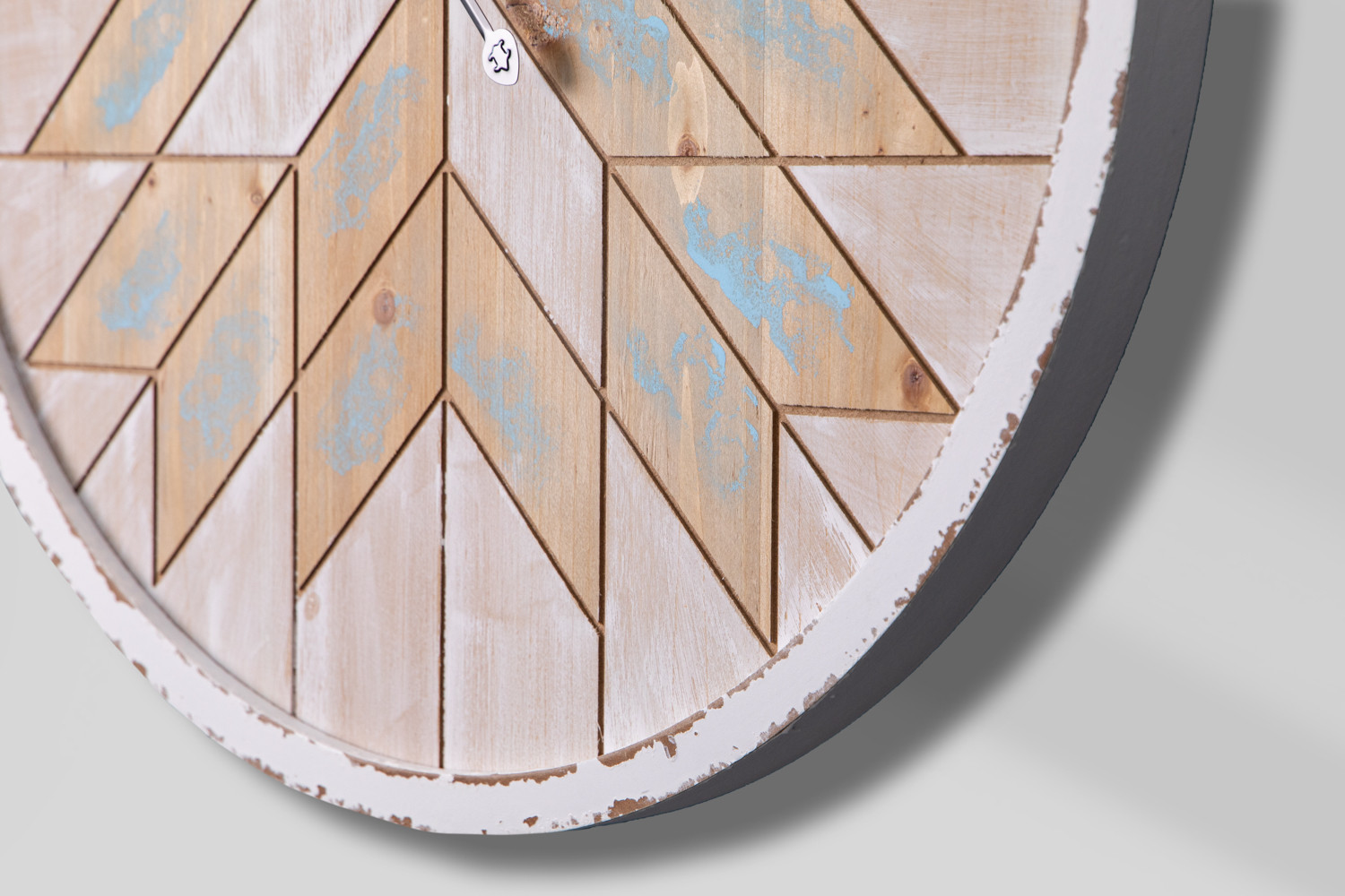 Introducing the Flemming Wall Clock to your environment adds a serene yet striking element. Its geometric patterns and soft blue highlights create a peaceful, artistic vibe, seamlessly merging with diverse decor styles. This clock is not just a timepiece but a conversation starter that elevates the aesthetic of any room.