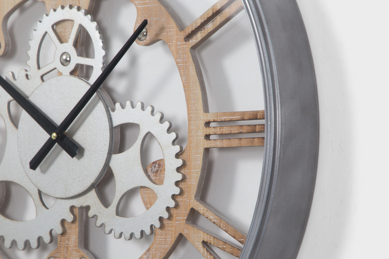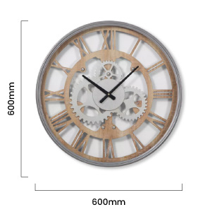 With an elaborate glass-covered wooden clock face and roman dials, the Gear Wall Clock is a stunning display in any interior.