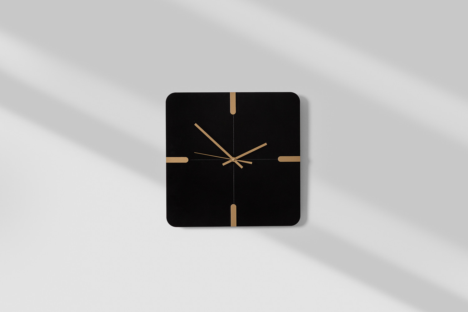 The Manon Wall Clock brings a modern edge to your space with its sleek square silhouette and softly rounded corners. The deep black face creates a striking canvas for gold-toned hands and minimalist markers, giving it a gallery-like presence. Clean and effortlessly chic, it’s the kind of piece that makes a wall feel both considered and complete.