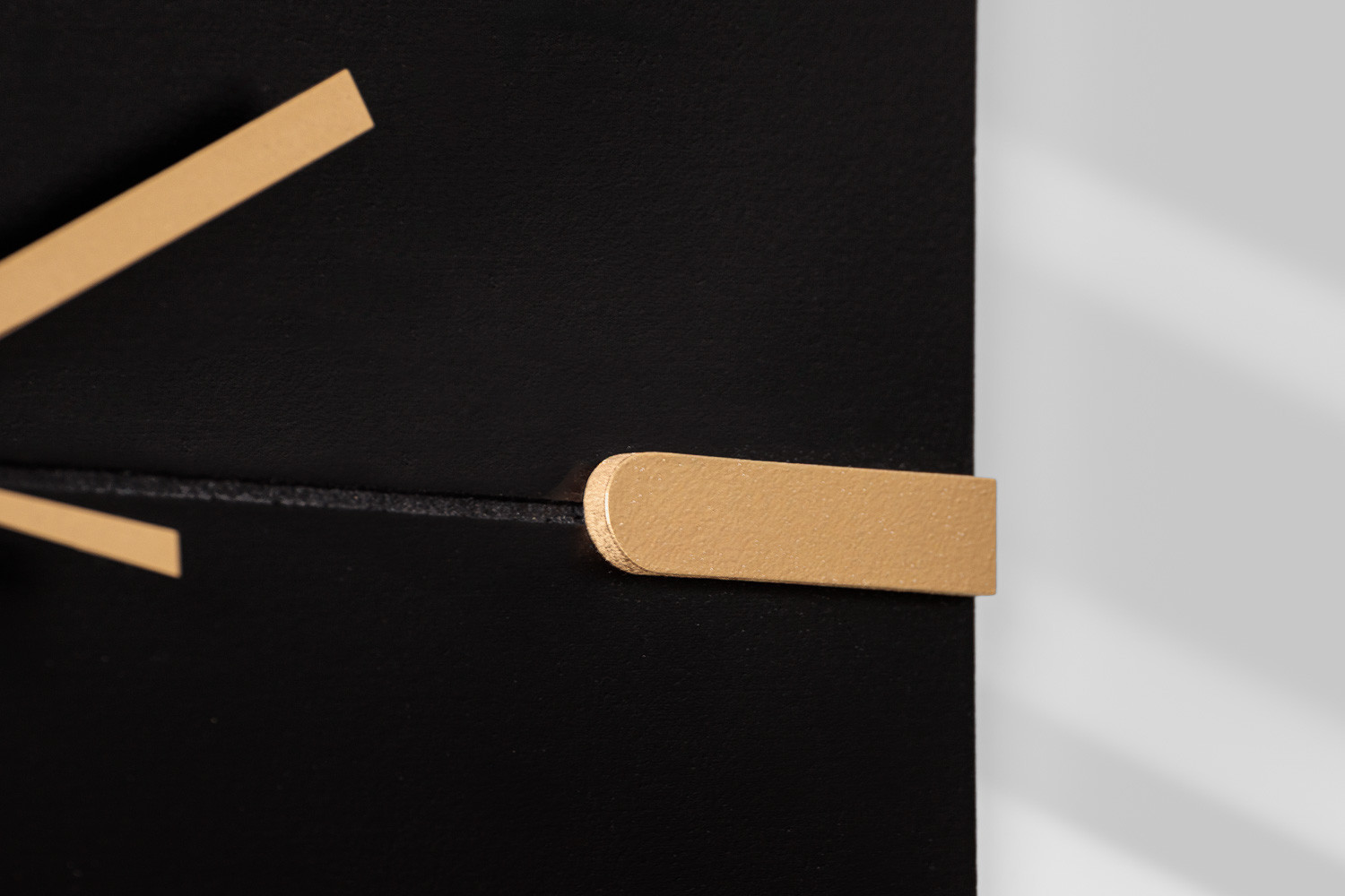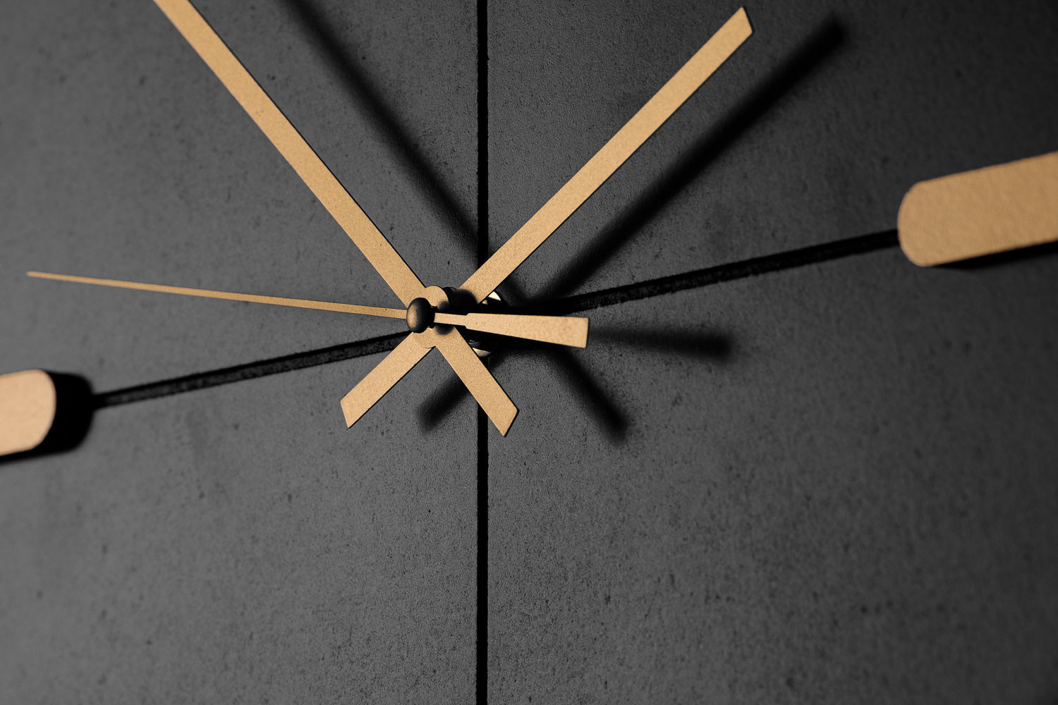 Designed for contemporary interiors, the Manon Wall Clock balances bold contrast with minimalist restraint. Its black face features a matte texture punctuated by slim, gold-toned hands and pared-back markers that give it an understated feel.