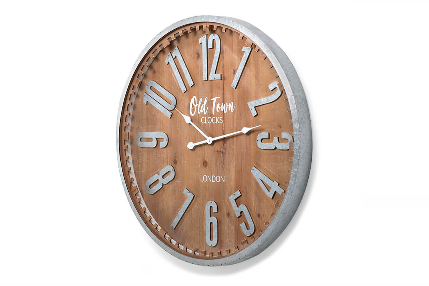 Don’t let the name fool you! The Old London Wall Clock is a trendy wooden timepiece with bold cut out lettering on a wooden face set in a deep metal and wood frame, fit for a contemporary home.