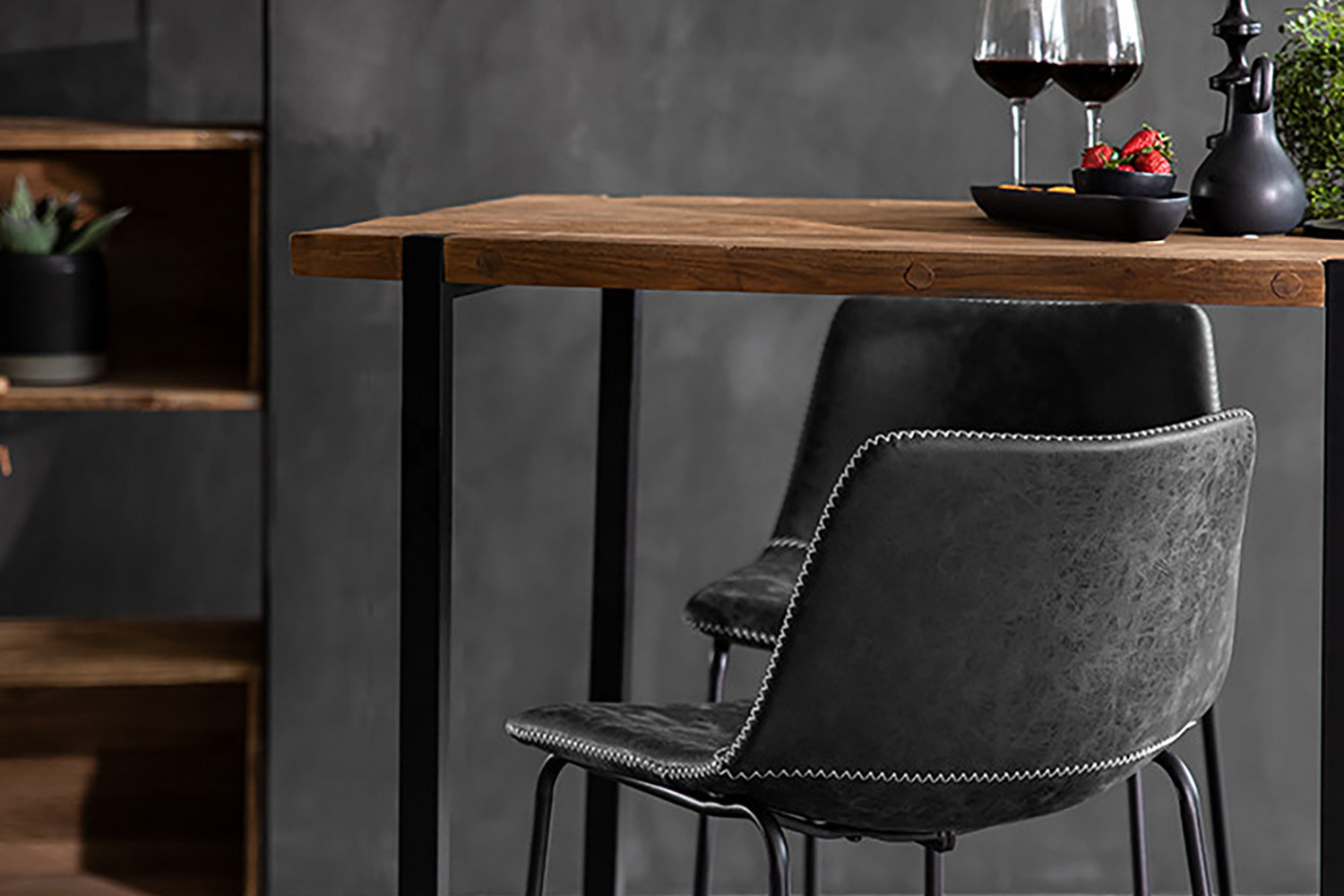Add some urban industrial flavour to your space and up your hosting game with the trendy Lazera Bar Table & Halo Bar Chairs. Featuring a solid teak root top with inset matte iron legs, the Lazera offers a sturdy, convenient and durable bar table with natural charm, ideal for intimate wine nights or as a snacks and drinks table for guests to gather around. The Halo bar chair offers a vintage style high-quality microfibre with exposed stitching adds to its unique appeal.