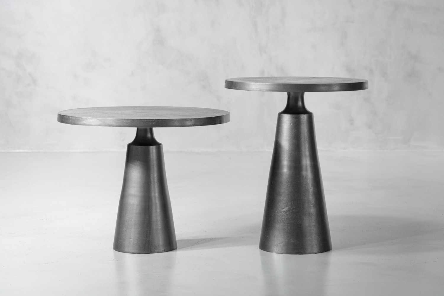 These tables are constructed from durable aluminium, offering sturdy and robust pieces without adding excessive visual weight to your space. The one-of-a-kind texture is created by the use of graphite enhanced finished - a special finish used to highlight the texture of forged aluminium. The finish produces a silvery grey-black colour, with a range of textures of the underlying metal.