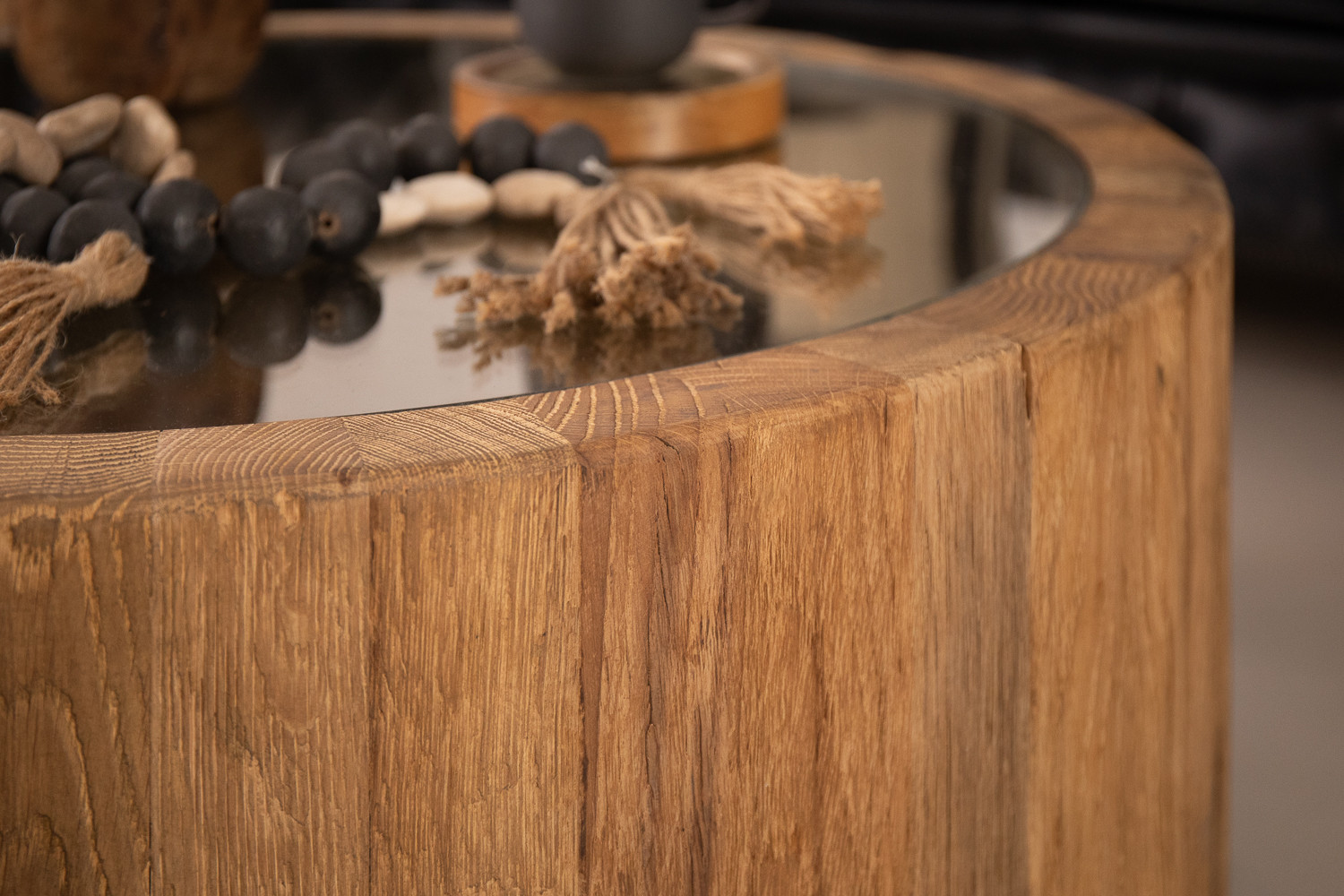 Embodying sophistication and style with its solid reclaimed oak foundation and sleek glass tabletop, the Dunas is a testament to fine craftsmanship. It's a luxurious centrepiece for your living space that was designed to deliver contemporary ambiance.