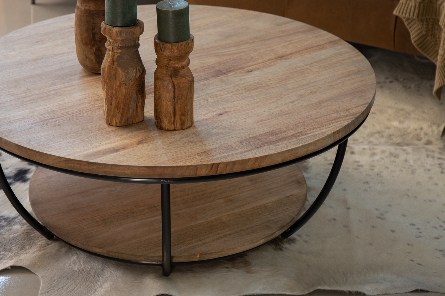 Set your eyes on the Emmett Round Coffee Table, a charming blend of rubberwood and mild steel that takes on an artisanal feel. It features a chic, circular design with two functional shelf levels that give it sophisticated appeal in both form and function. The Emmett is proof that luxury can be practical too.