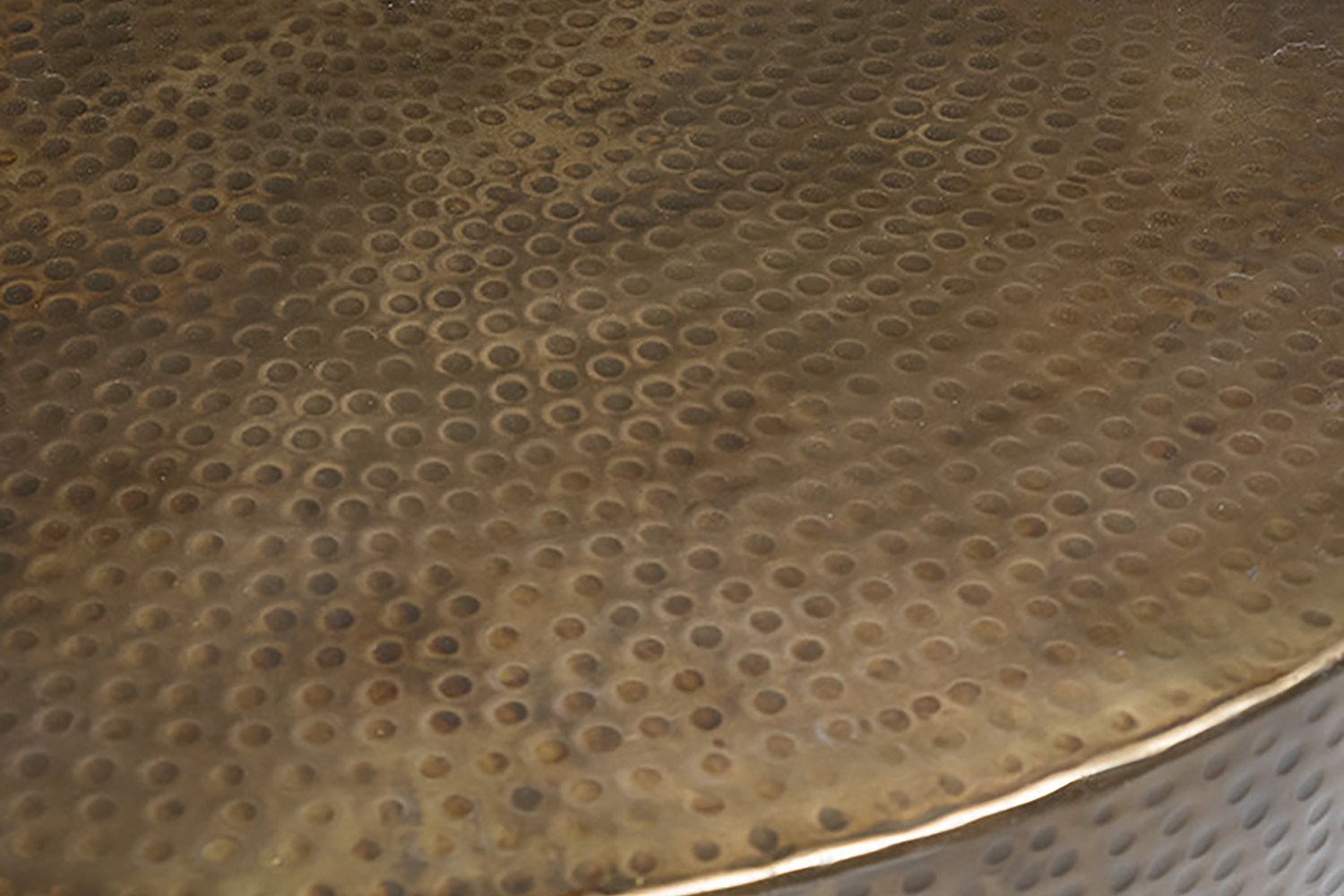 With its rustic design and hammered aluminium finish, the Gulshen Coffee Table is charming and characterful. Expertly crafted from aluminium, this artisanal table is durable and easy to care for.