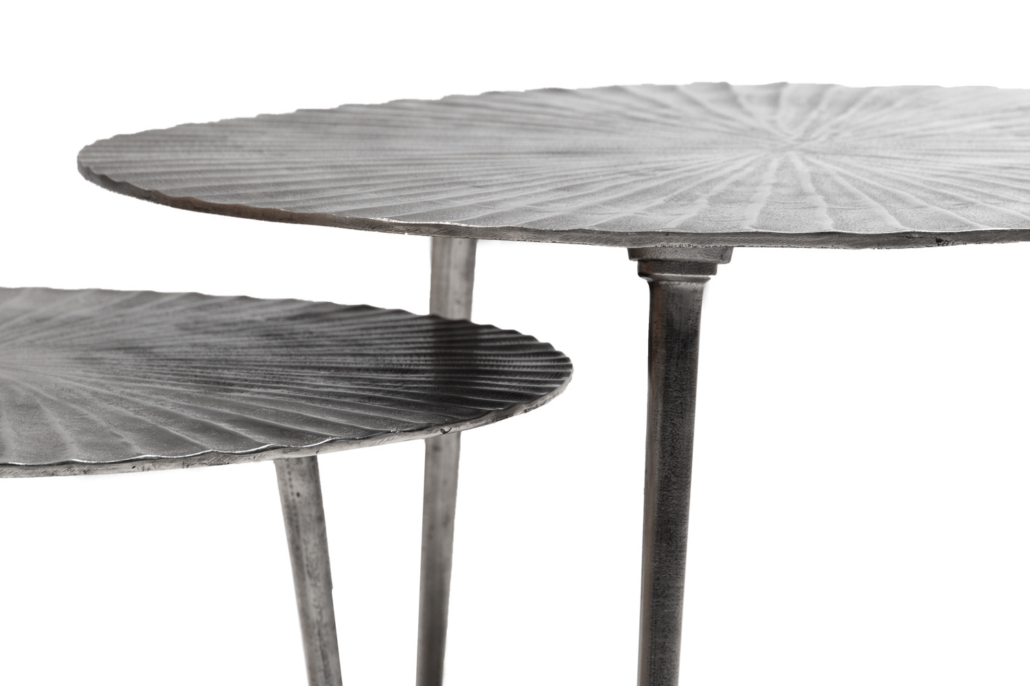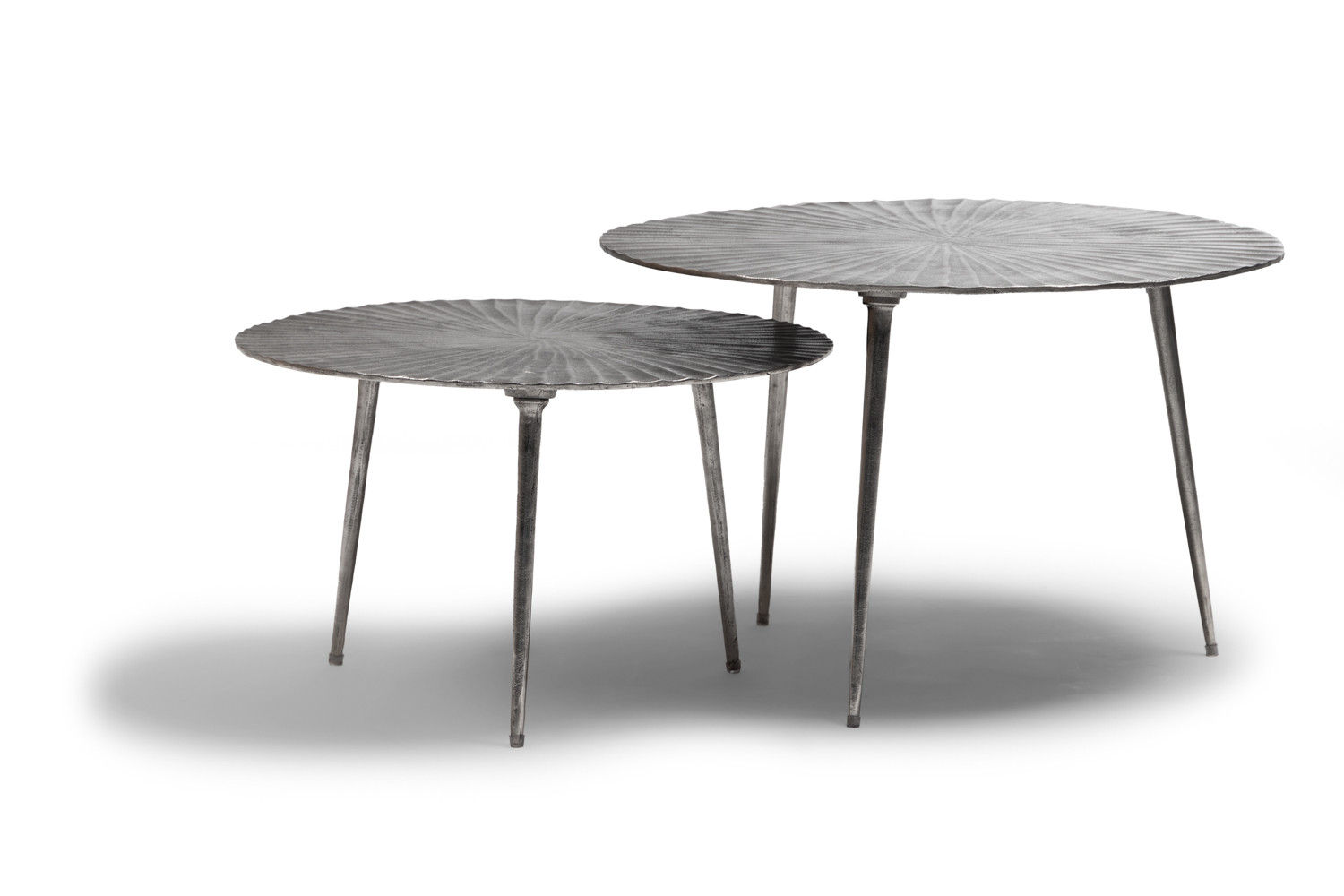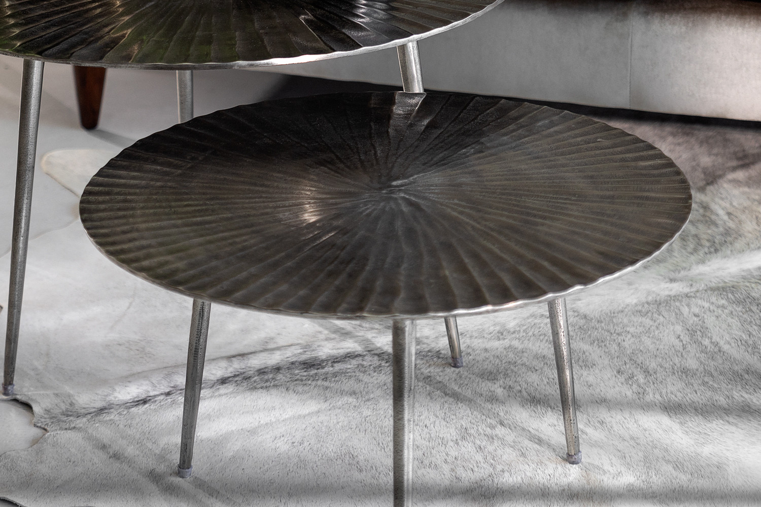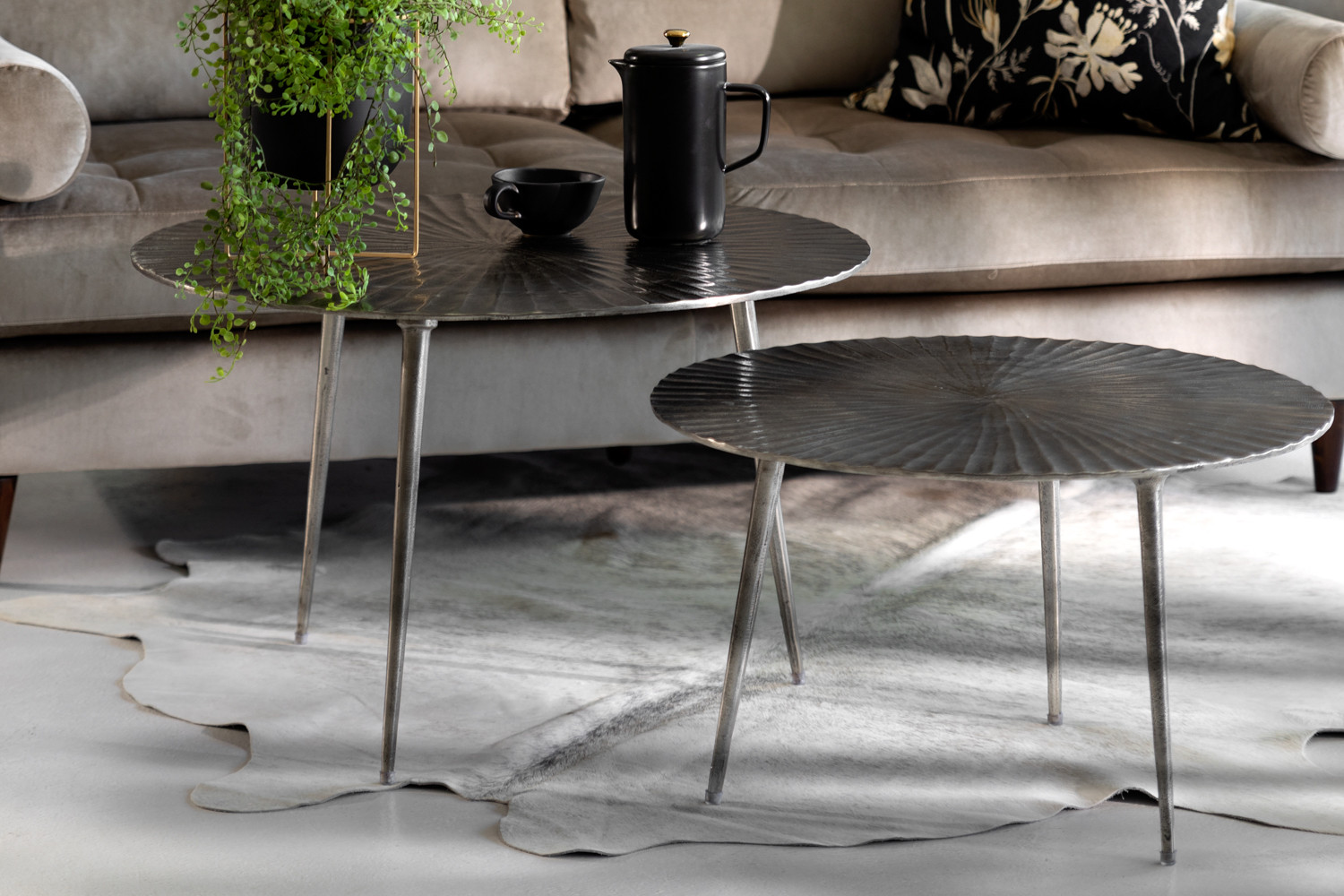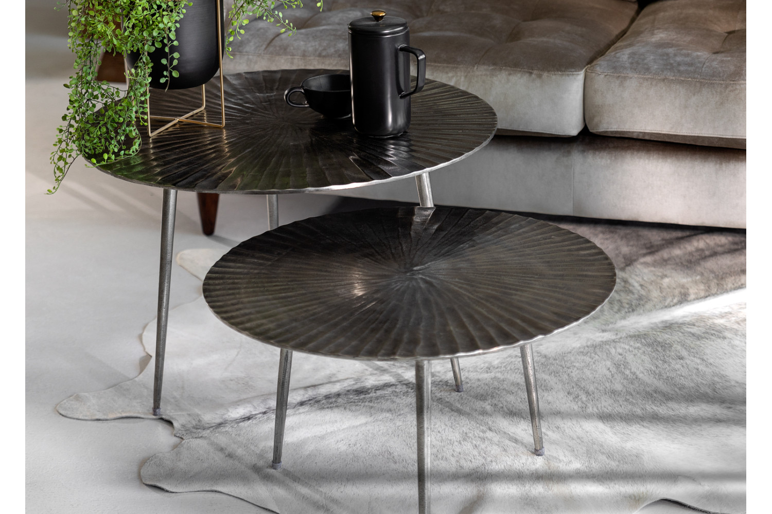 The Mani Nested Coffee Tables present a contemporary look to any living space. These modern coffee tables are beautifully crafted from aluminium and boast a distinctive spiral textured finish that will fill any space with charm and character.