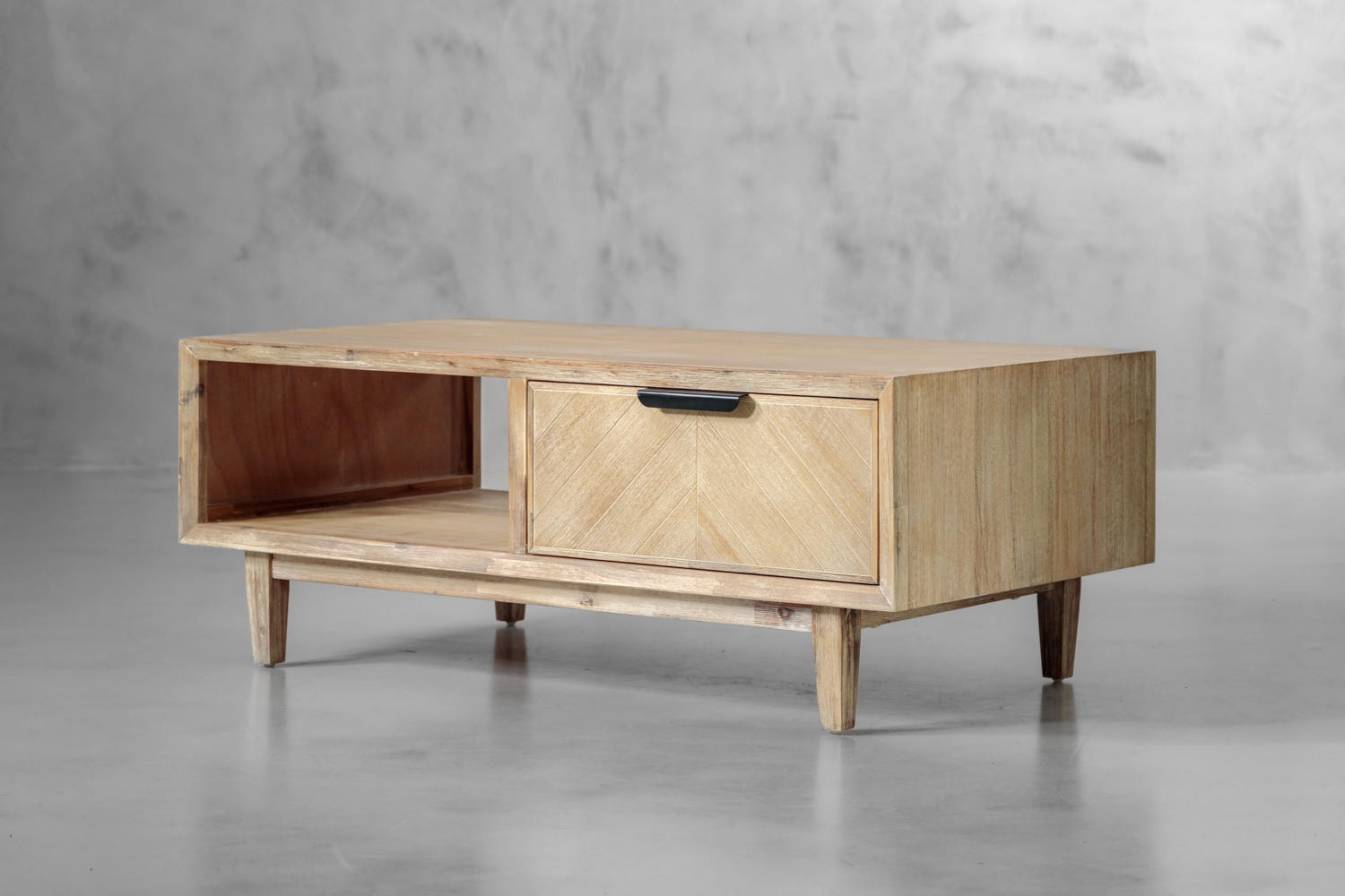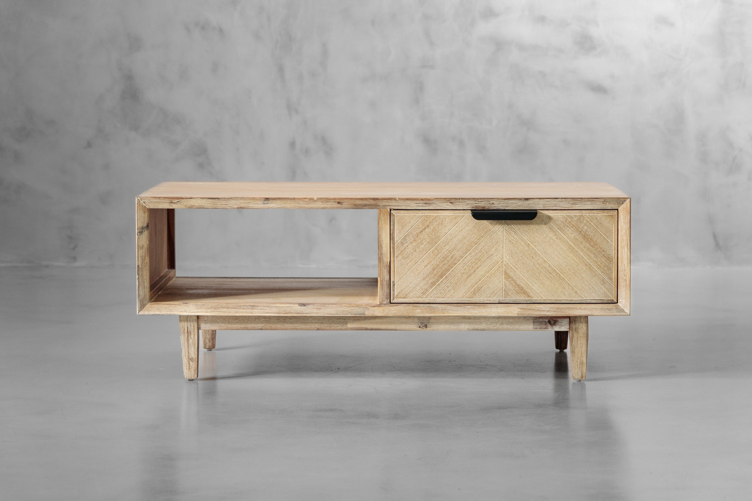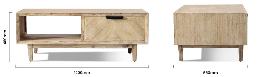 The McKenna Coffee Table presents a fusion of form and function. With a spacious drawer and storage void, this captivating centrepiece blends beautiful Acacia wood with modern convenience.