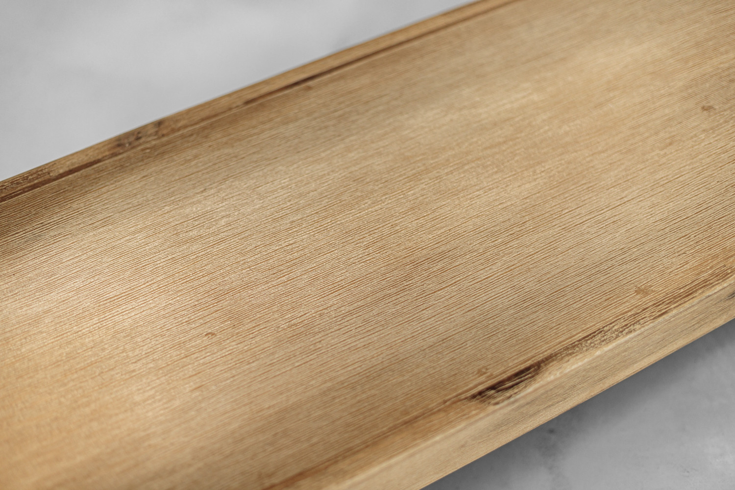 The brush technique beautifully enhances the unique grain of this wood, and gives it a slightly weathered finish that will hide any accidental scratches.