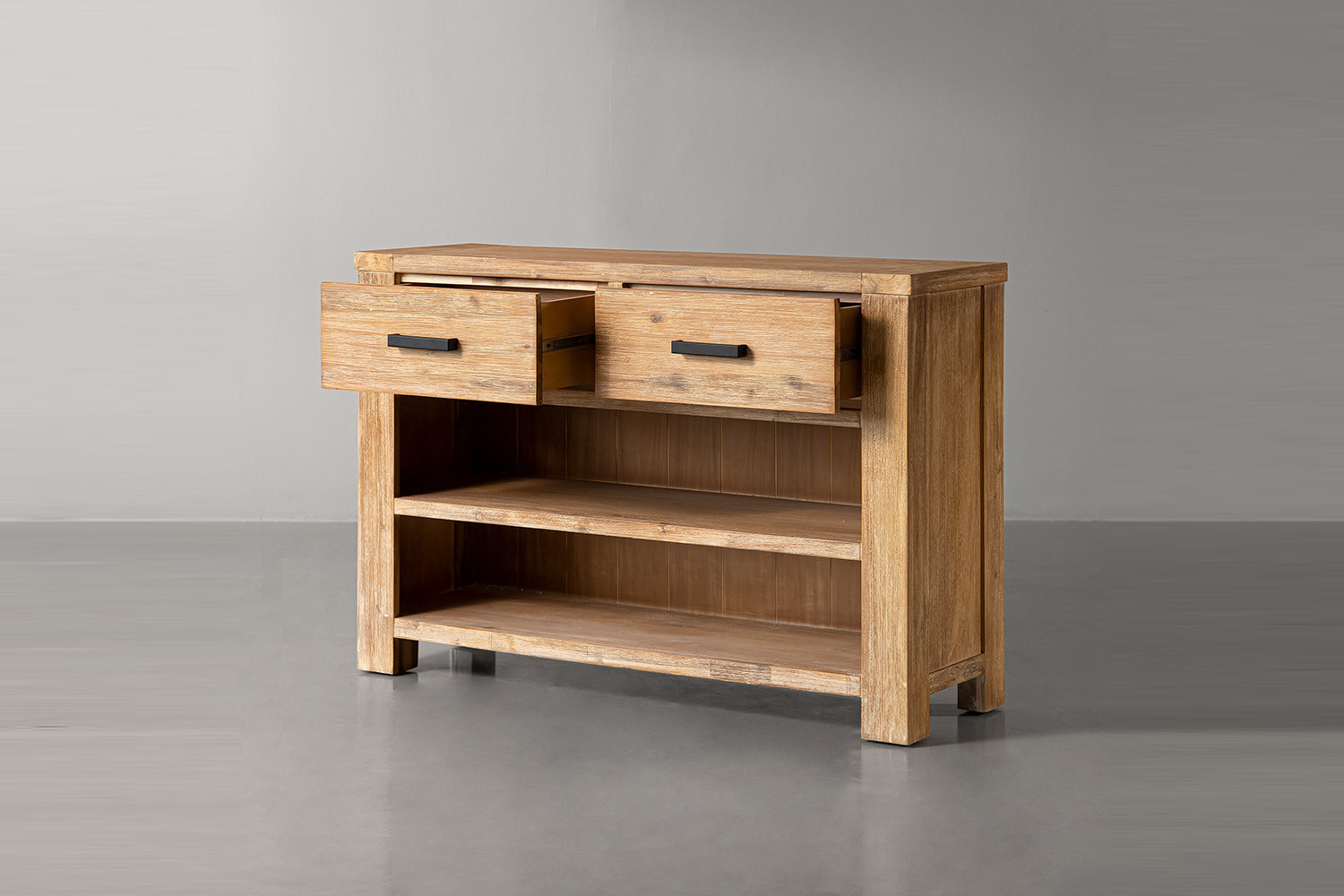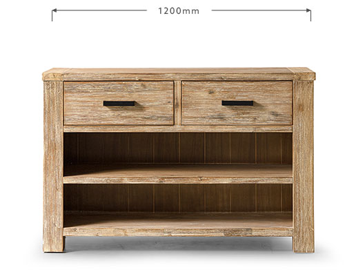 This aesthetically appealing two-drawer console table presents the perfect semi-rustic element to add to your living space. A contemporary table, crafted from solid Acacia wood, the Clayden Console Table marries visual appeal and functionality. Two ample drawers combine with two lower display shelves to add storage and style to your dining room, living room, or hallway.
