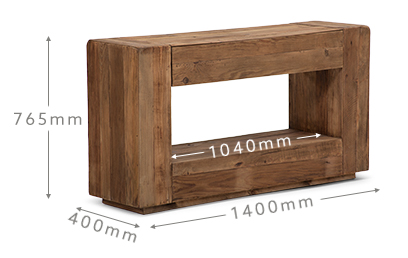 The table is crafted from solid reclaimed pine and offers versatile display and storage that can work equally well as a sideboard or TV stand.