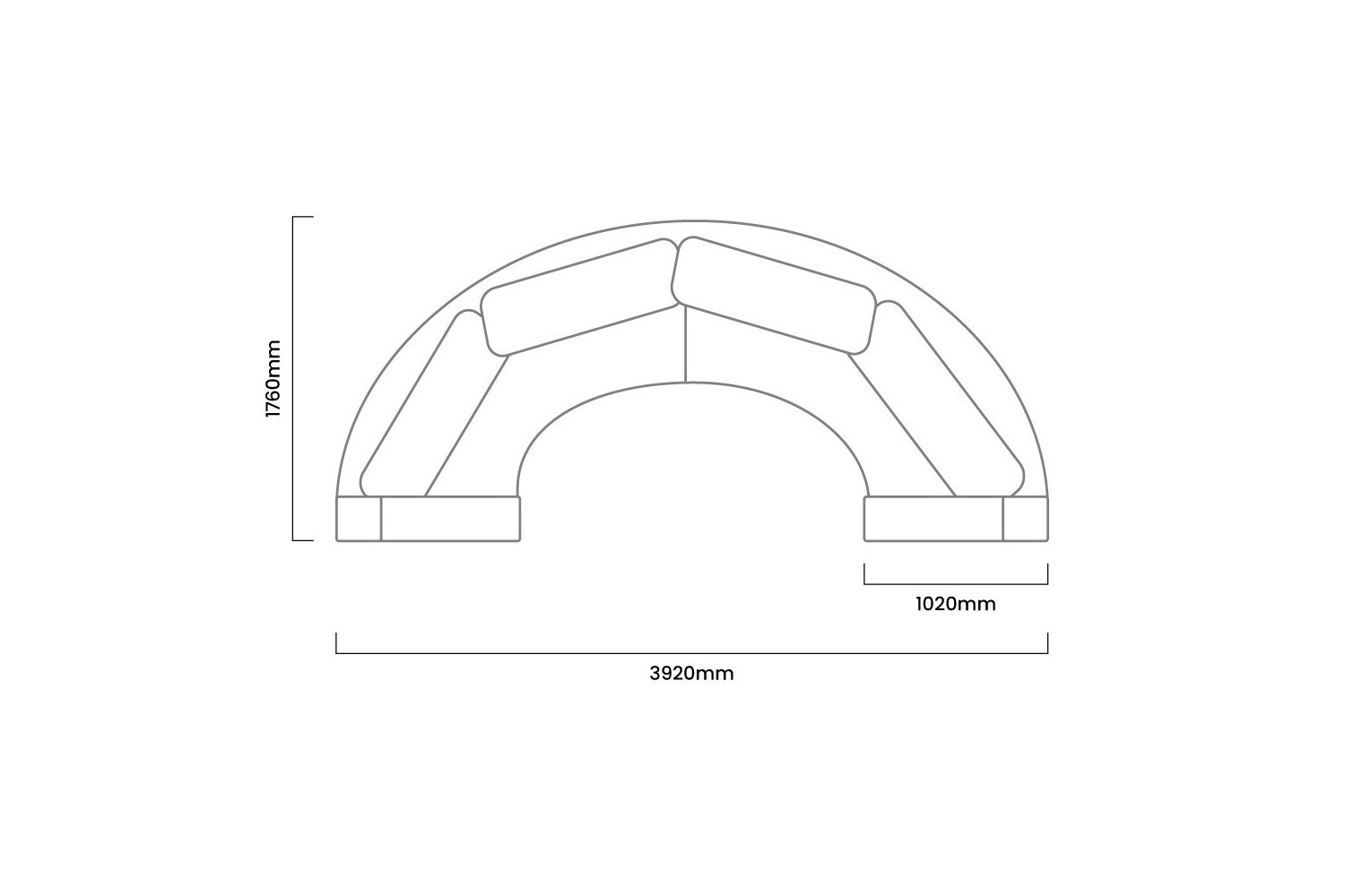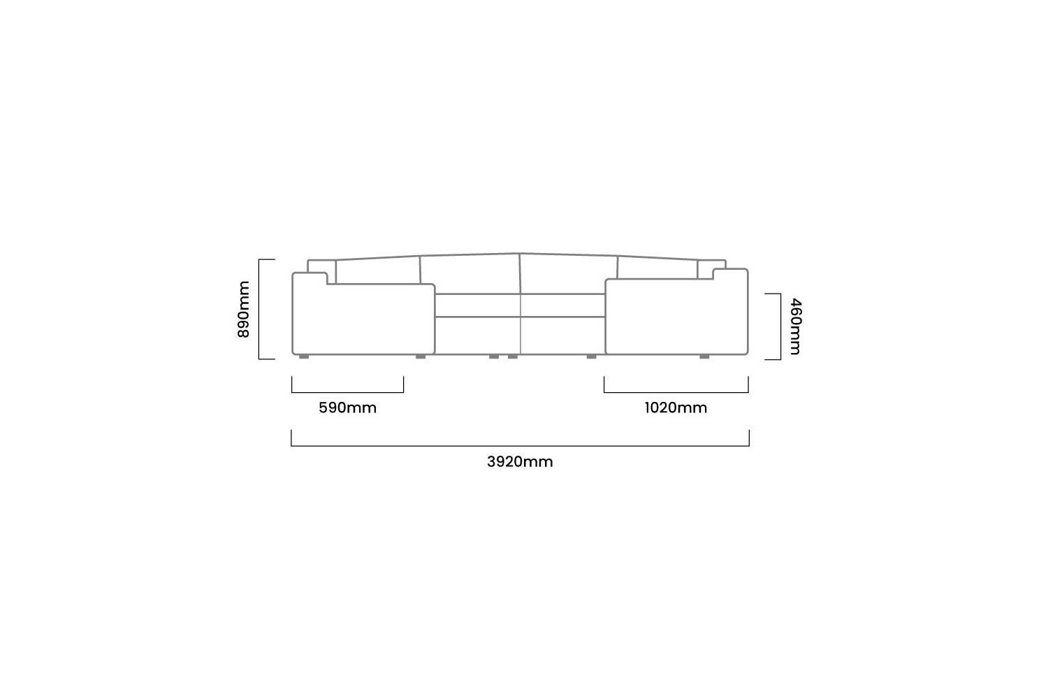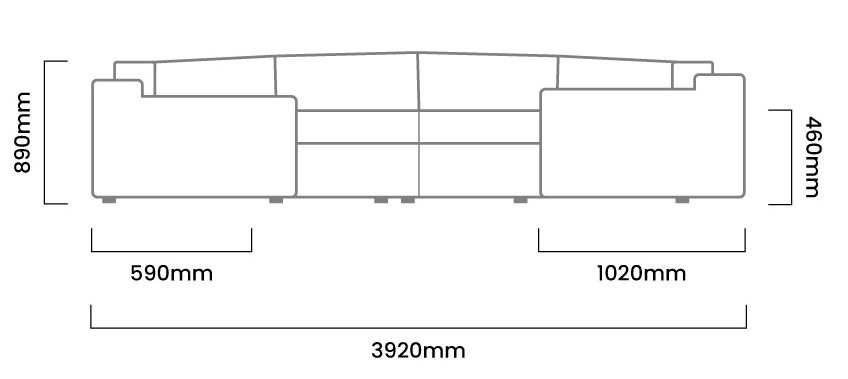 3920mm (L) x 1760 mm (W) x 890mm (H) | Seat Height 460mm | Seat Depth 590mm