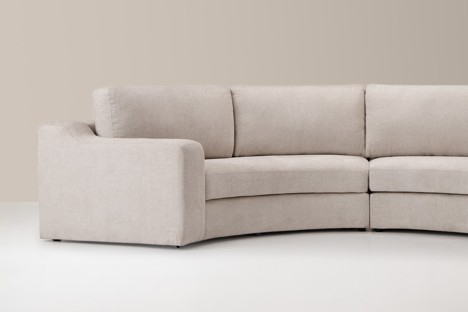 The Embergrain Modular C-Shape Couch is a modern masterpiece designed to fill your living space with irresistible flair. Wrapped in premium taupe fabric, this curved modular delivers a sculpted look while making a major style statement. Its impressive proportions and flowing shape create stunning visual impact while offering generous seating for entertaining and relaxed lounging.