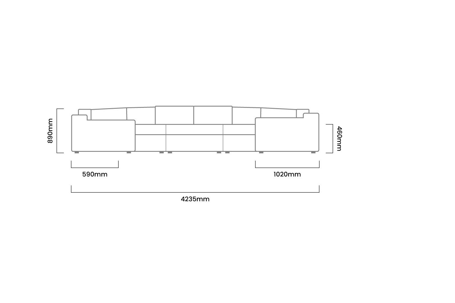 4235mm (L) x 2375mm (W) x 890mm (H) | Seat Height 460mm | Seat Depth 590mm