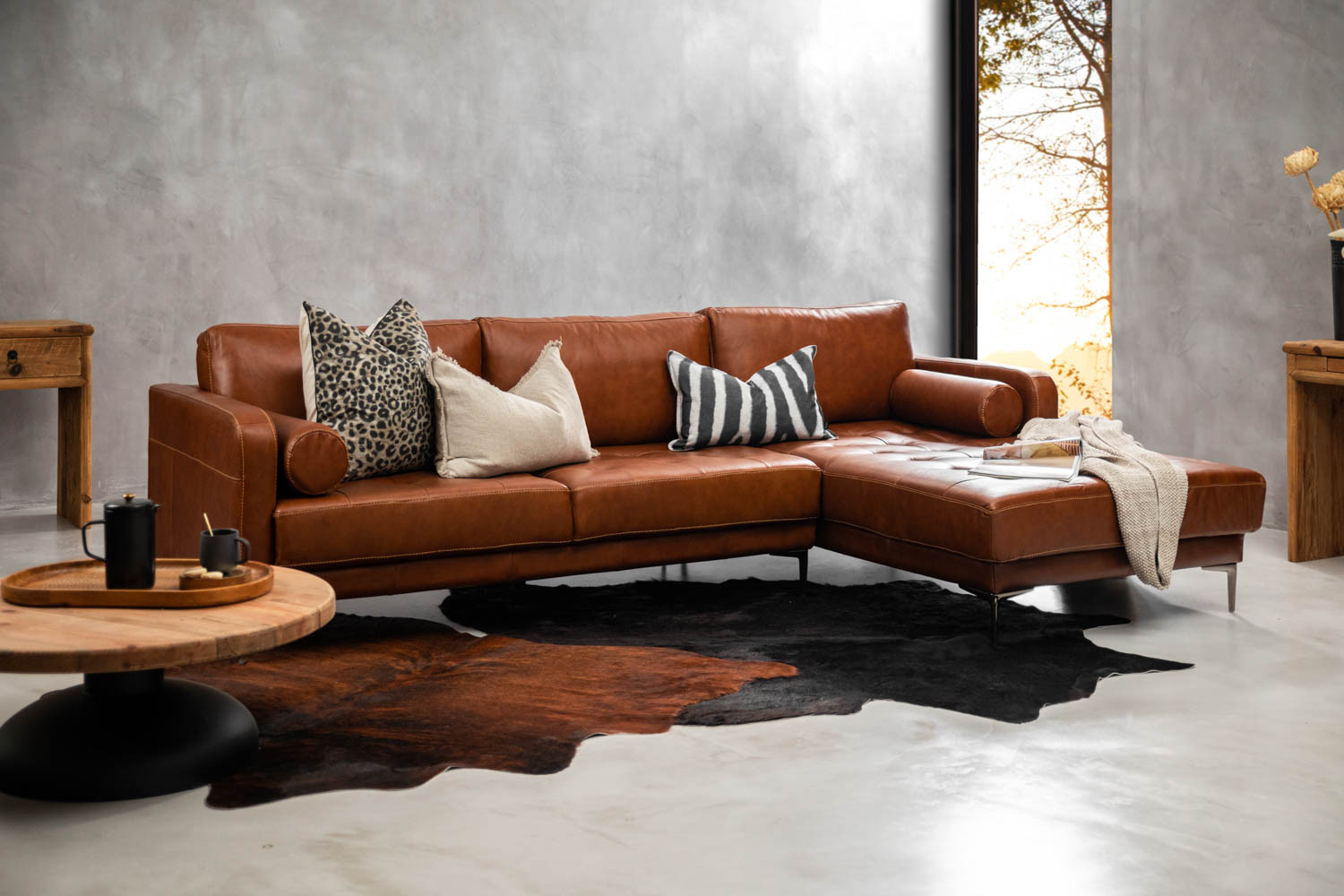 The Hayden L Shape Couch offers an ideal blend of luxury and comfort, upholstered in high-quality leather that will add depth and richness to your space. The combination of sumptuous cushioning and leather makes this couch an irresistible spot to kick back and relax, while sophisticated touches including stitched detailing and tufted seating make for a beautiful and timeless statement piece.