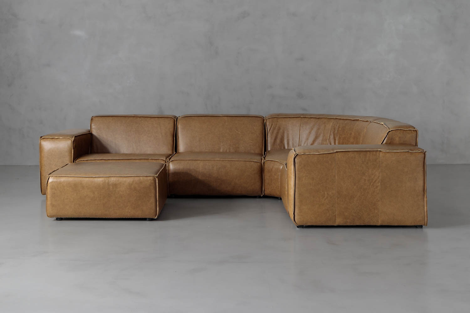 • 5-piece Modular Couch with free-standing full grain leather ottoman