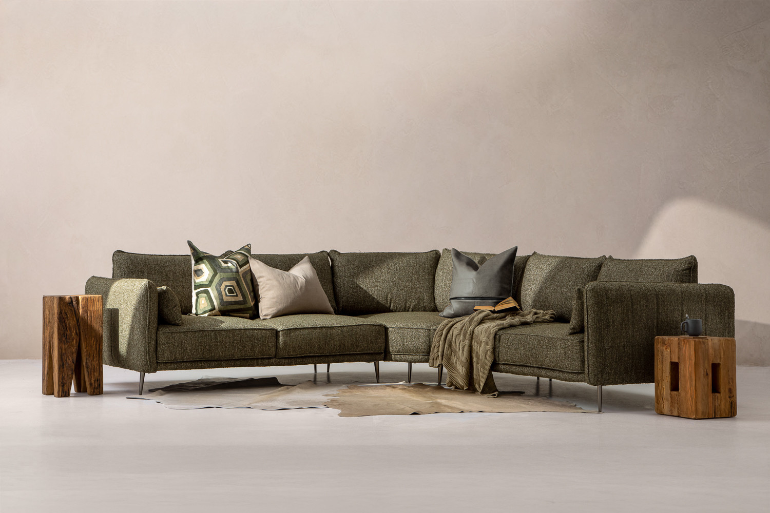 Add an inspiring touch of modern elegance to your space with the Ottavia Corner Couch. With its bold green colour and vintage texture, this ample Corner Couch makes an ideal statement piece, adding unparalleled style and luxurious comfort to your living space. Sink back into plush cushioning, put your feet up, and enjoy the soft embrace.