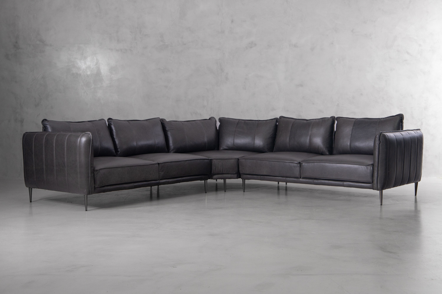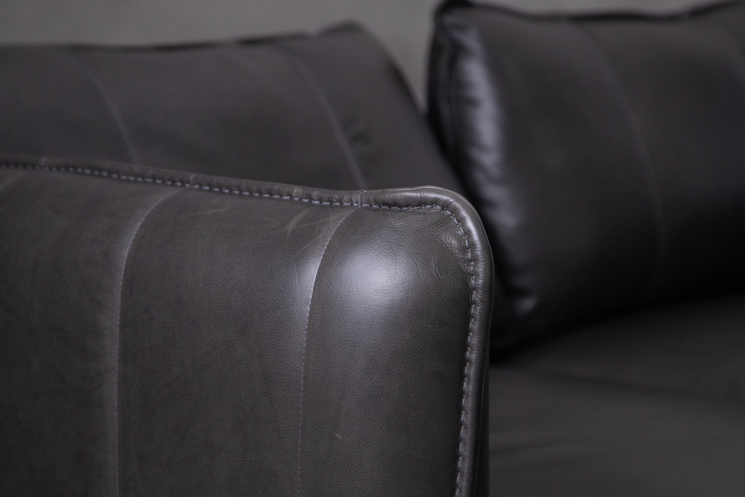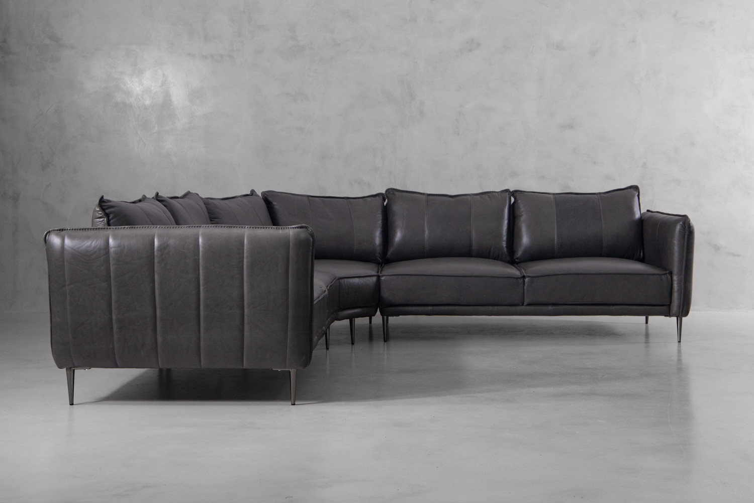 With its Mid-century modern inspired design, this sleek and well-proportioned corner unit emphasises easy comfort and clean lines for a simple yet elegant look. High quality full grain leather upholstery adds a luxurious finish, with tapered metal feet perfectly contrasting and balancing the design overall.