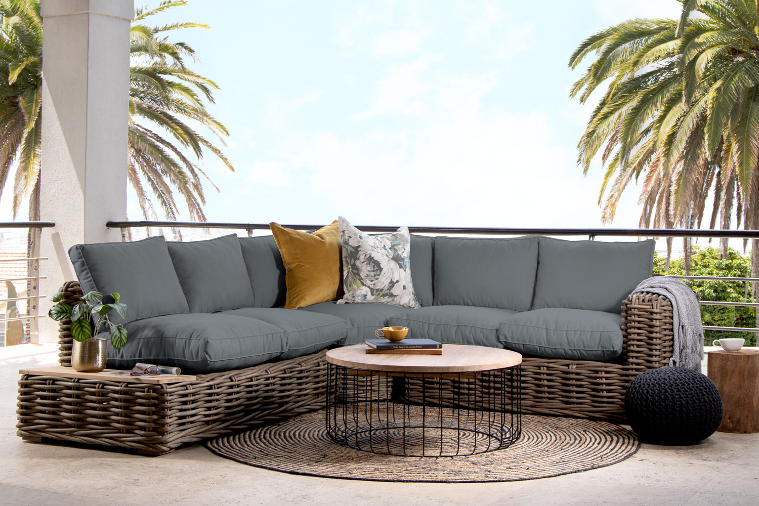 Breathe fresh life and style into your outdoor space with the exquisite Panama Corner Patio Lounge Set, creating the perfect setting for many relaxing hours with family or guests.