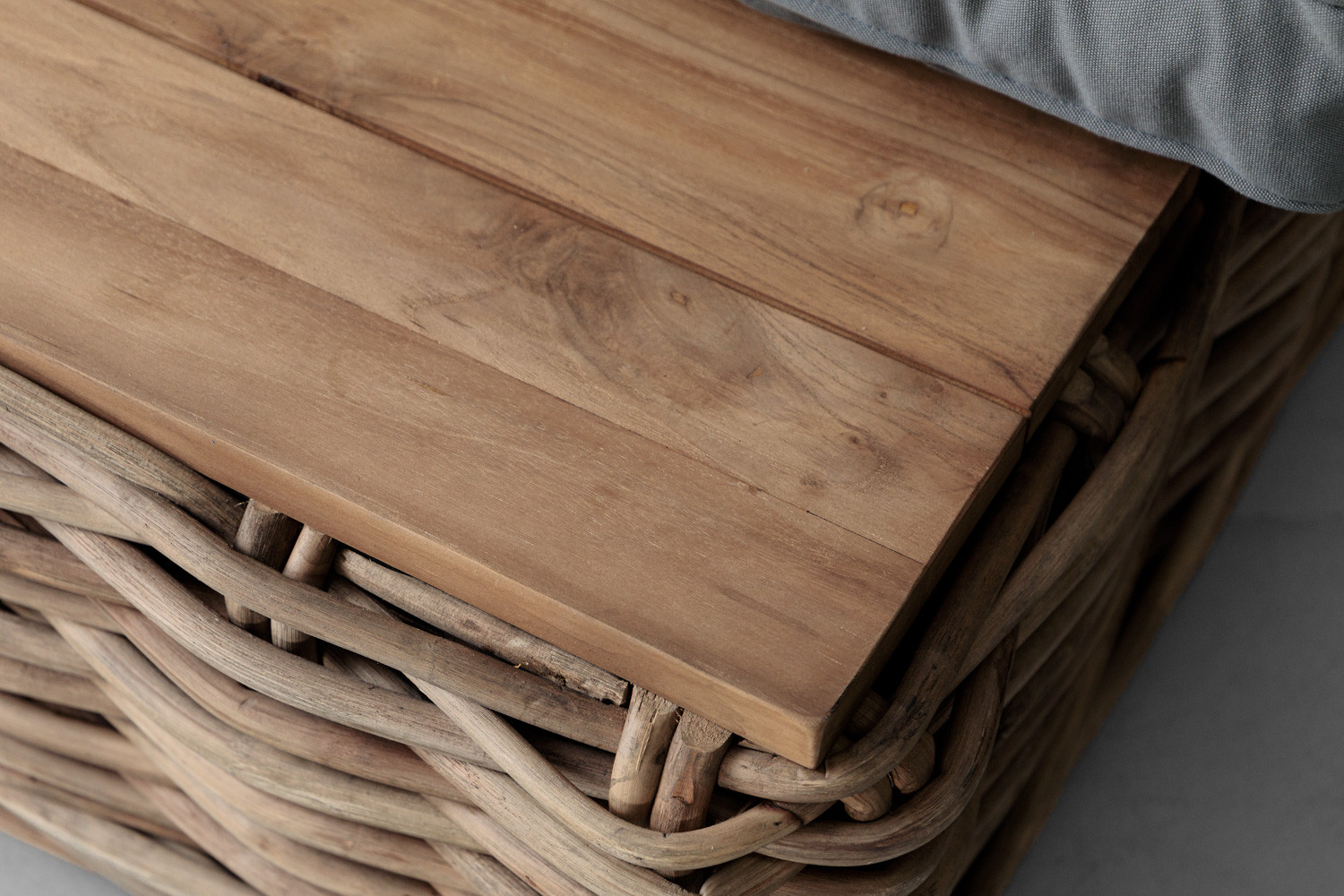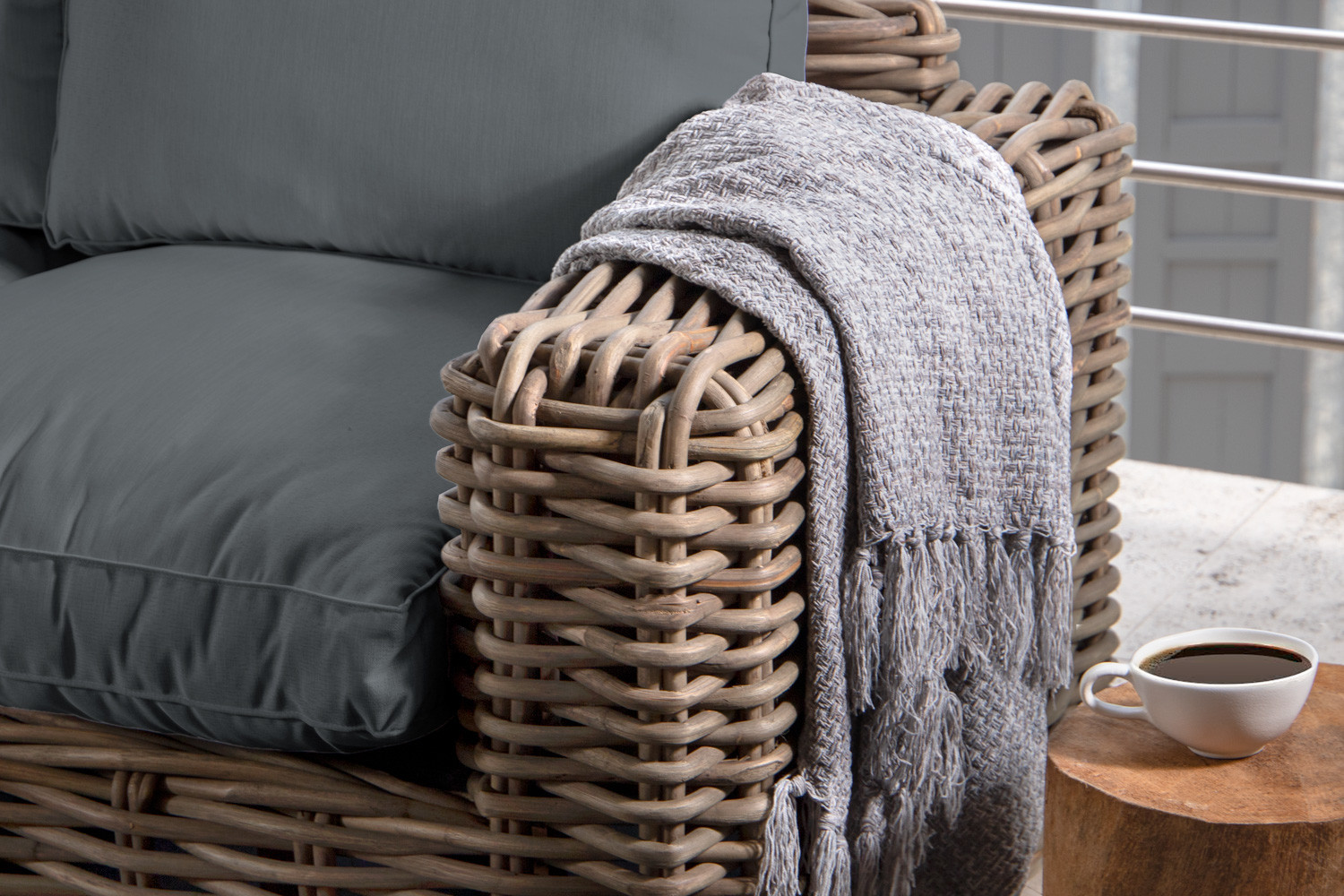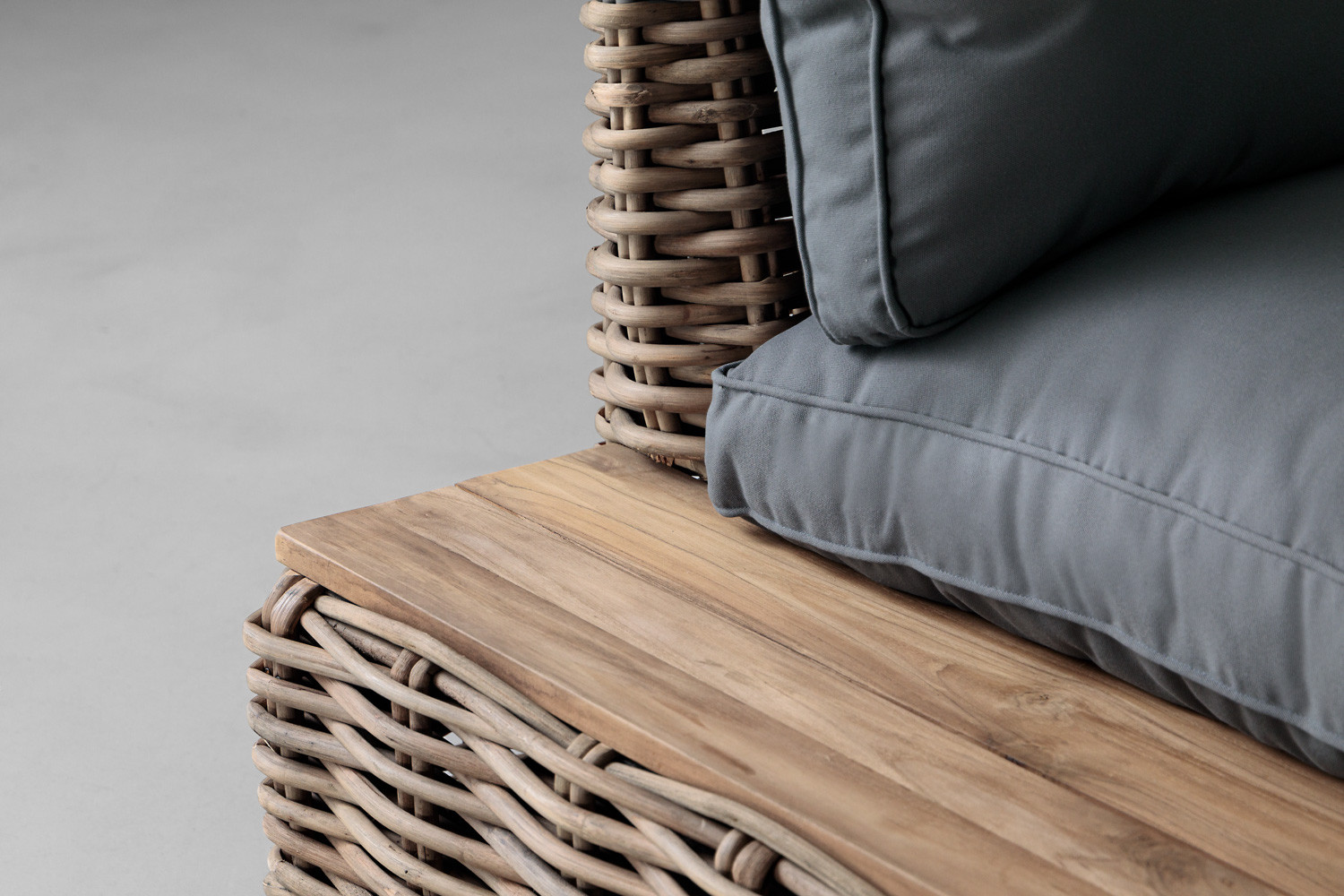 Rustic style large-weave rattan complemented by cool, sumptuous champagne-coloured cushions gives this piece a beautifully natural and laid back feel that’s guaranteed to help you unwind in stylish luxury.
