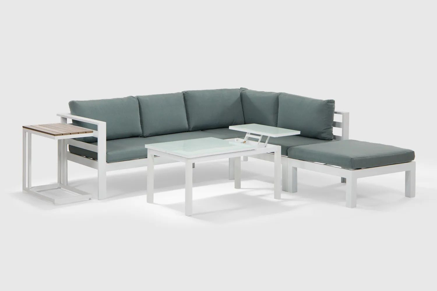The corner unit and tables are constructed from high-grade aluminium which is strong, lightweight, and rust-proof, with excellent durability.