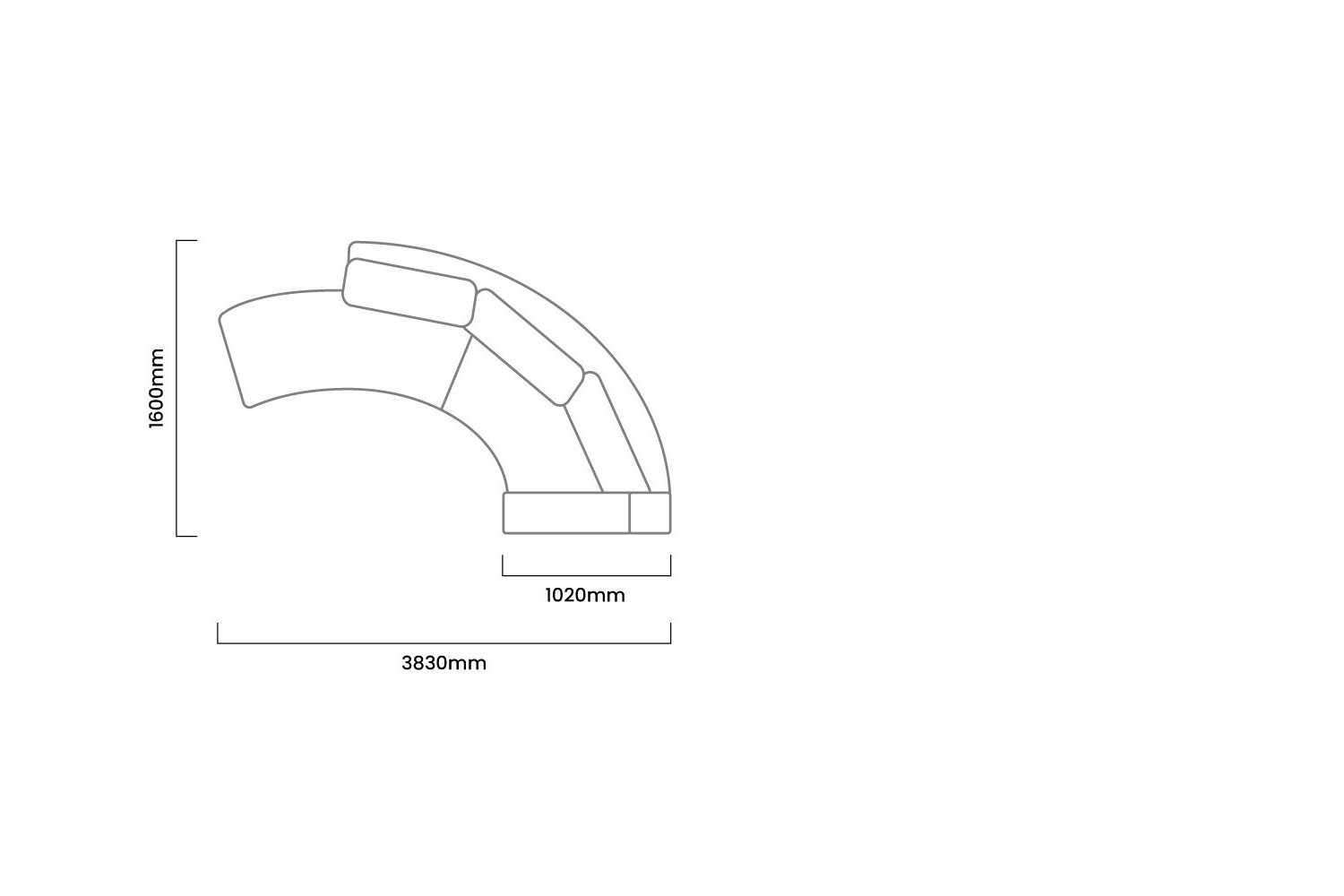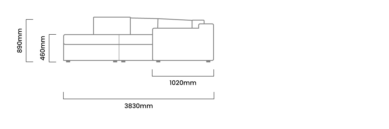 3830mm (L) x 160mm (W) x 890mm (H) | Seat Depth 460mm |Seat Height 590mm